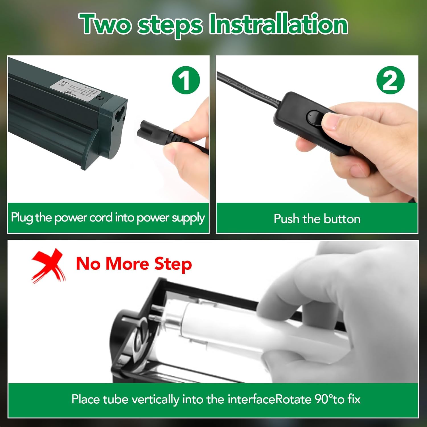 - Easy to Install and Safety - Plastic protective covers are attached to both ends of the reptile light fixture, adding flame retardant materials to ensure safety. The detachable power cable is easy to carry and install, and various mounting accessories allow the T5 uvb reptile light fixture to easily fit on a wire mesh or terrarium, and It can also be mounted on wooden tank with screws. We are equipped with a detailed instruction manual for your reference.