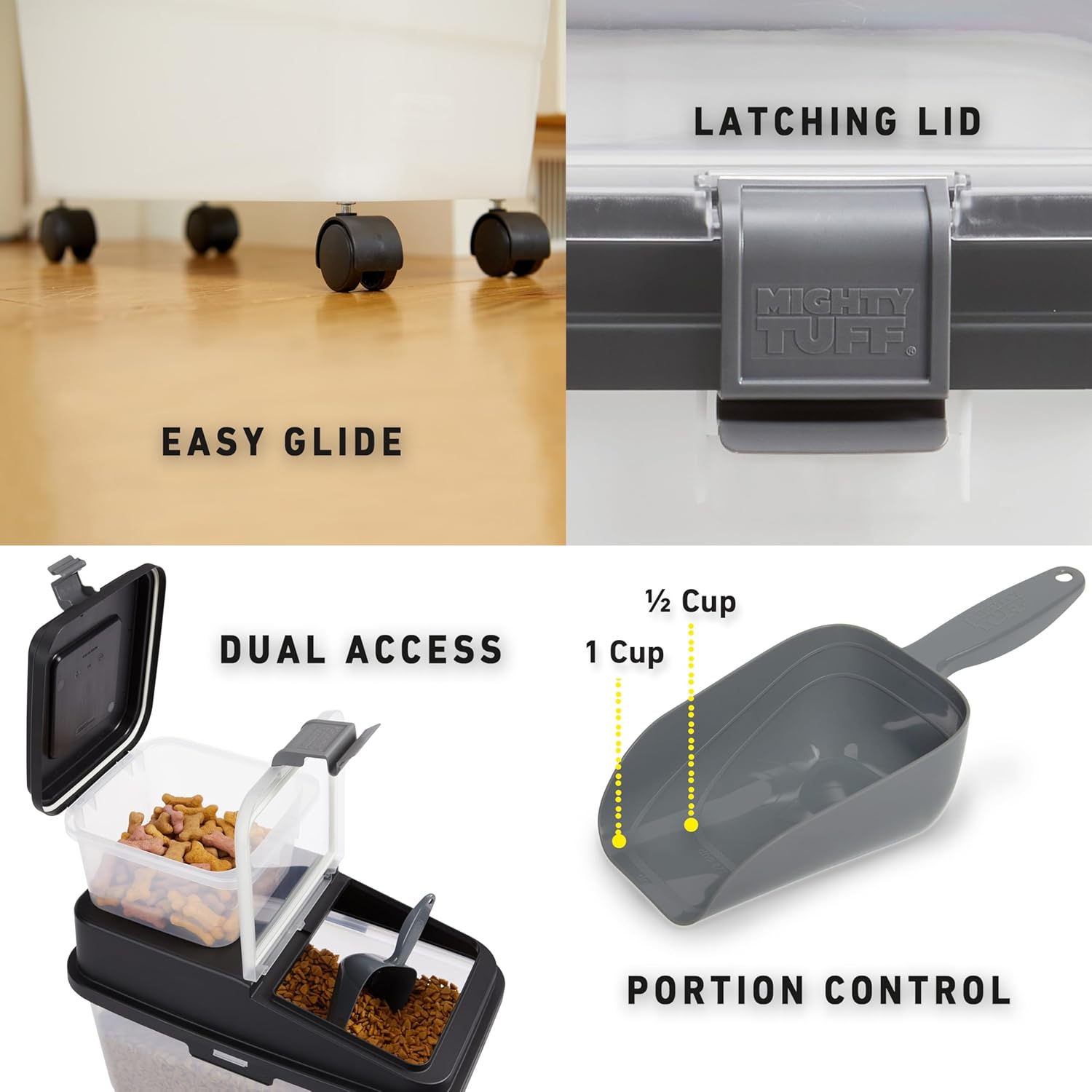 - EASY MOBILITY: Equipped with smooth-glide wheels, this rolling dog food bin makes moving heavy food bags simple—no more lifting heavy dog food containers