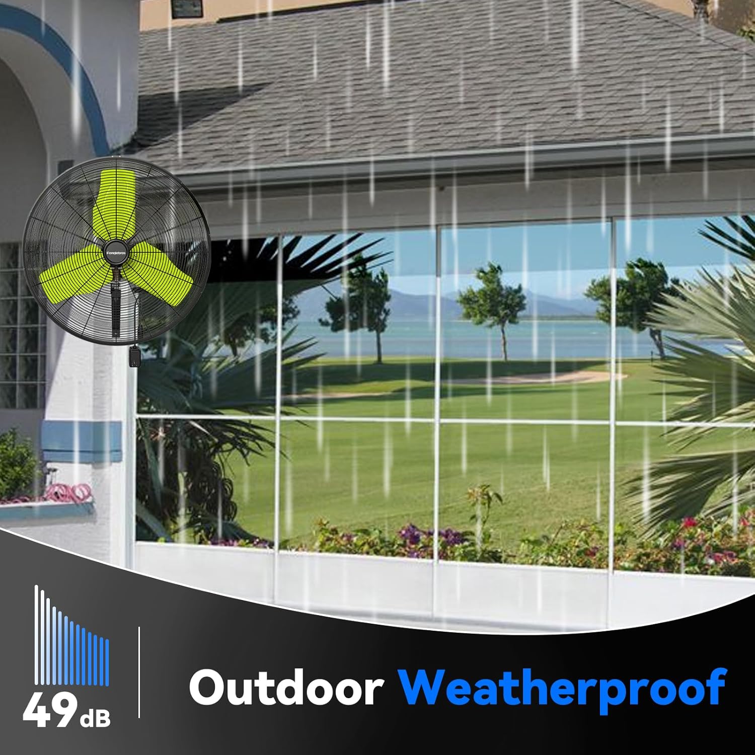 Pro 9500 CFM 24" Outdoor IP44 Waterproof Wall Mount Fan, 3-Speed Oscillating Metal Fans with Enclosure Motor, Heavy Duty Wall Fan for Patio, Warehouse, Garage, and Jobsite