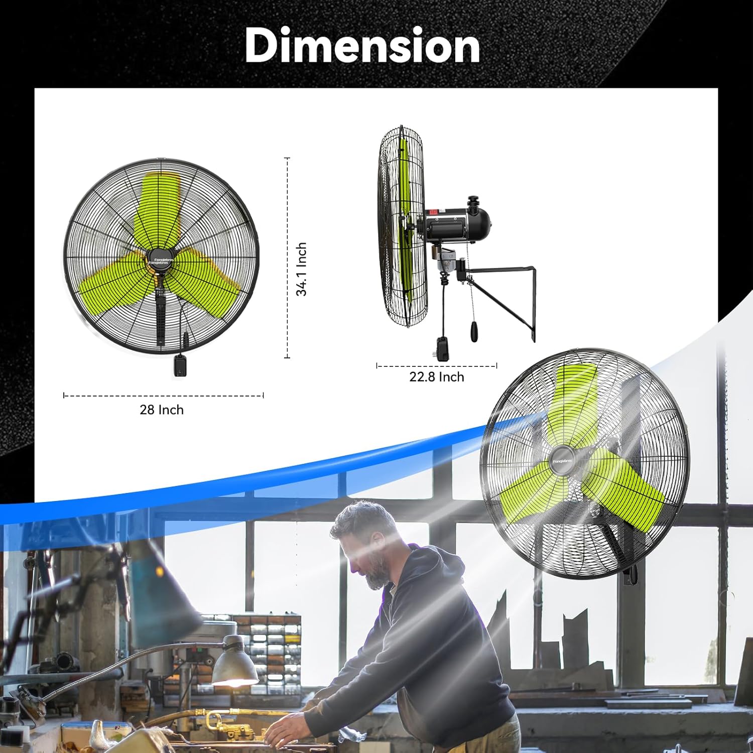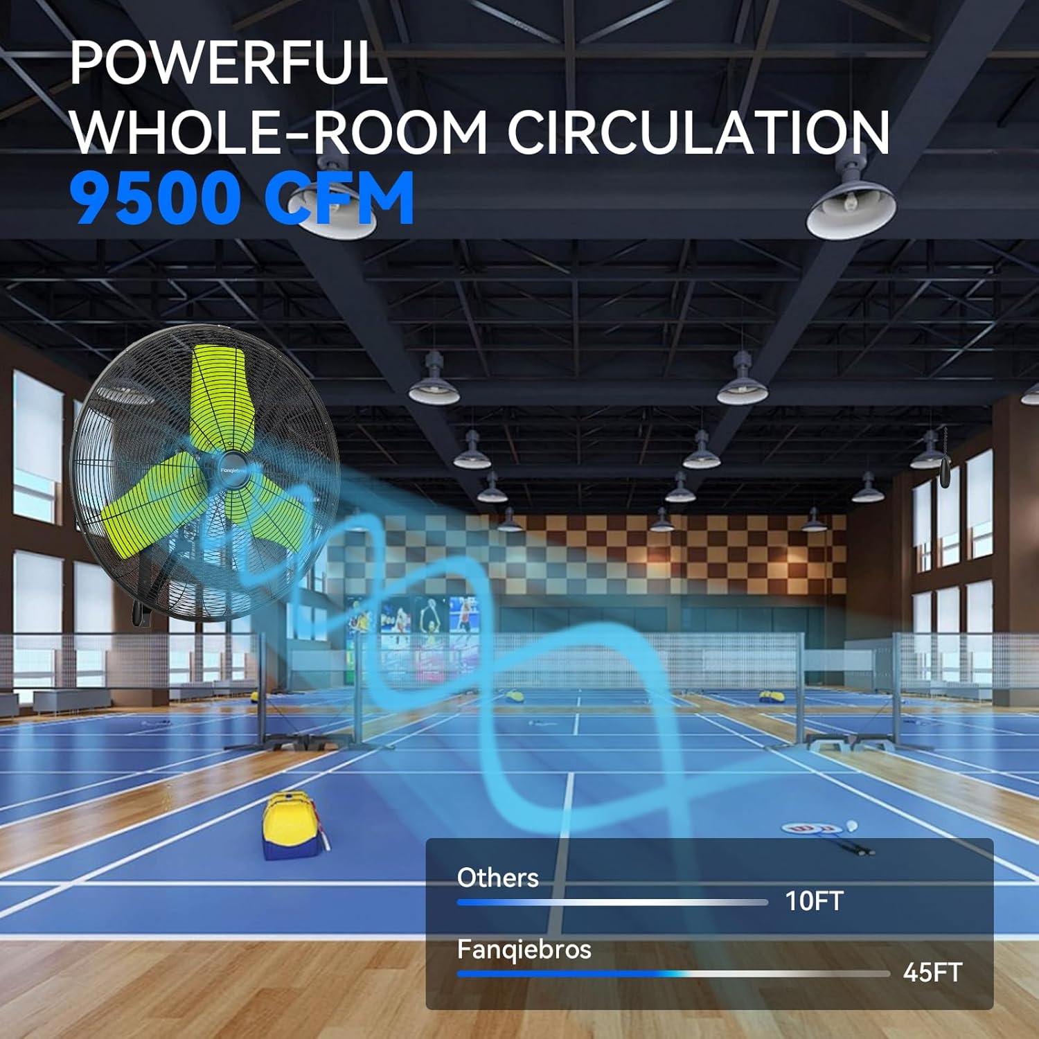 - 𝐋𝐨𝐰-𝐍𝐨𝐢𝐬𝐞 𝐃𝐞𝐬𝐢𝐠𝐧 - The heavy-duty wall fan operates at a high speed of 9500 CFM with a noise level of only 65dB, which is lower than the industry standard, creating a quieter gathering or working environment