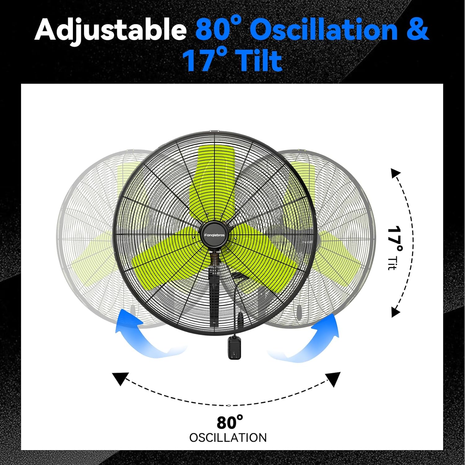 - 𝐓𝐢𝐥𝐭𝐢𝐧𝐠 & 𝐎𝐬𝐜𝐢𝐥𝐥𝐚𝐭𝐢𝐧𝐠 - The heavy-duty mental wall fan provides an automatic oscillation function of 80 degrees left and right, and the vertical tilt angle can be adjusted up to 17 degrees, helping you easily adjust the wind direction and enjoy the best comfort