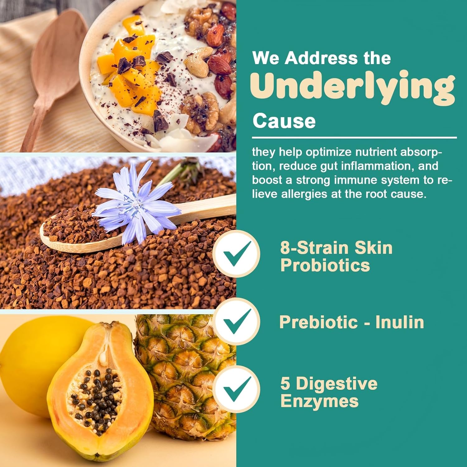 - Advanced Dog Allergy Formula: Our Allergy-Aid Dog Probiotics is expertly designed with 8 probiotics + natural botanicals, the dog probiotics for digestive health support immune health, and target the root cause of allergies for dogs with sensitive skin