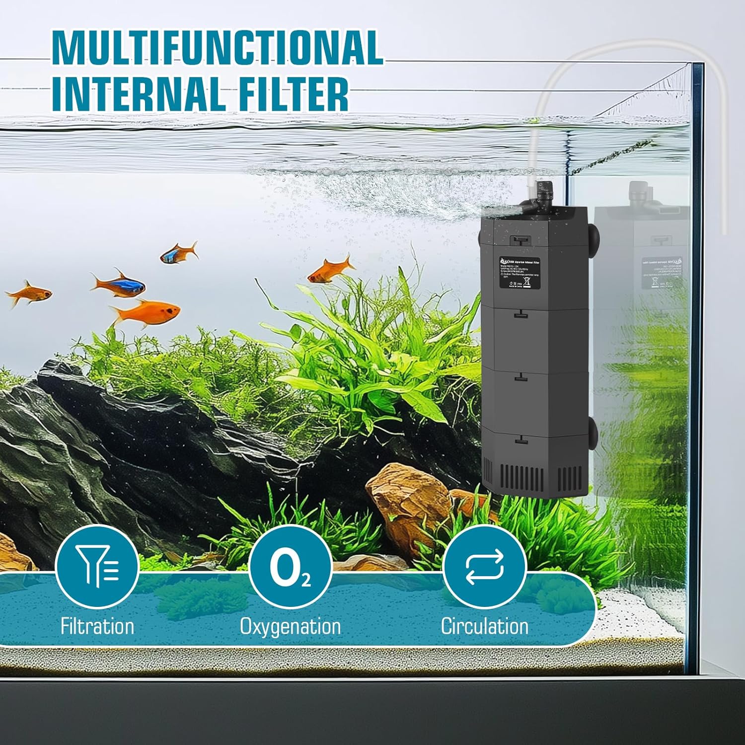 - 4-in-1 Multifunctional Aquarium Filter – The fish filter combines filtration, water circulation, aeration, and gentle wave making in one unit, ensuring clear water and stable oxygen levels. The soft current reduces dead spots and simulates natural water movement, promoting a balanced and thriving aquatic environment