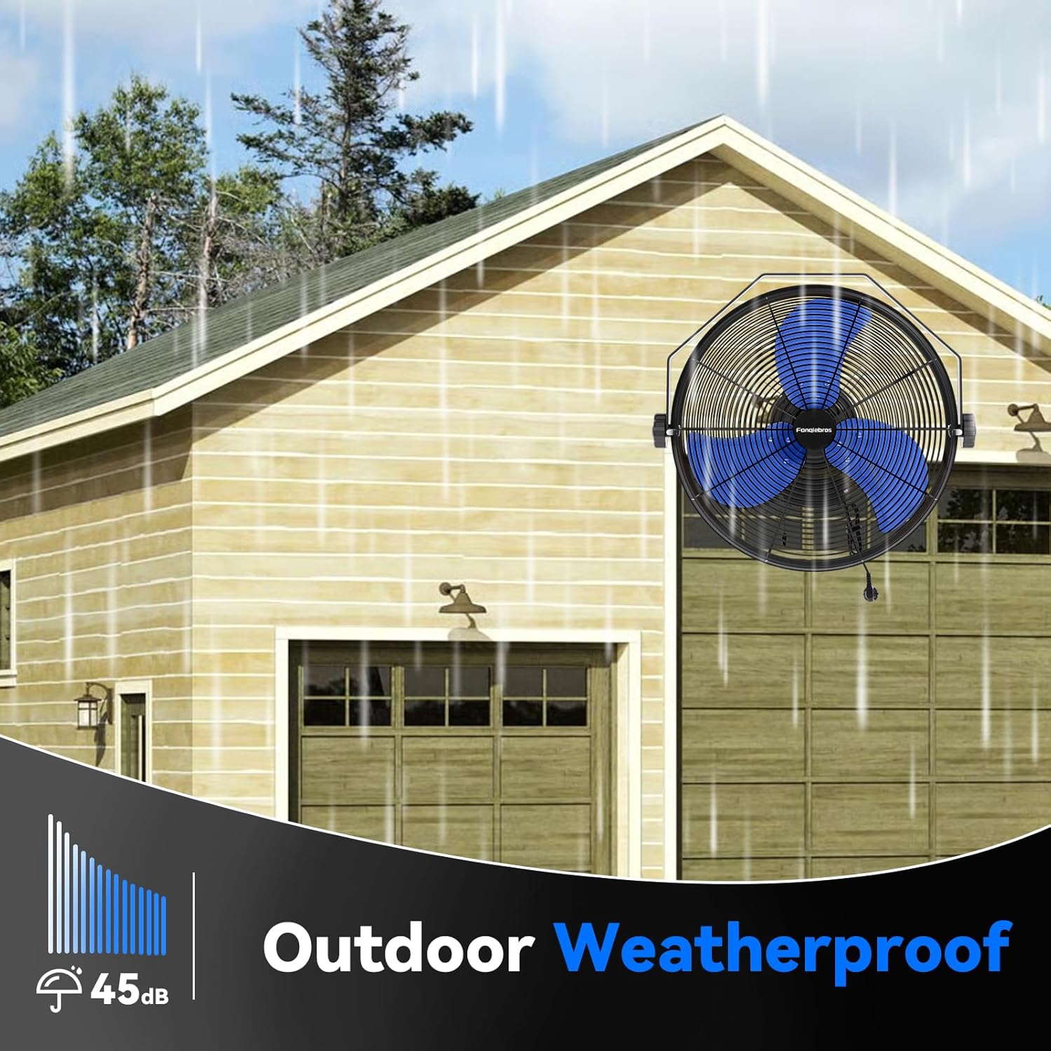 - 𝐇𝐢𝐠𝐡 𝐕𝐞𝐥𝐨𝐜𝐢𝐭𝐲 𝐀𝐢𝐫 𝐅𝐥𝐨𝐰 - Equipped with 3 adjustable wind speeds, low (2100CFM), medium (2300CFM) and high (2600 CFM), this wall fan utilizes the raw power of the pure copper motor to provide hurricane-like airflow to perfect for outdoor patio, garage, warehouse, humidity environments, dust