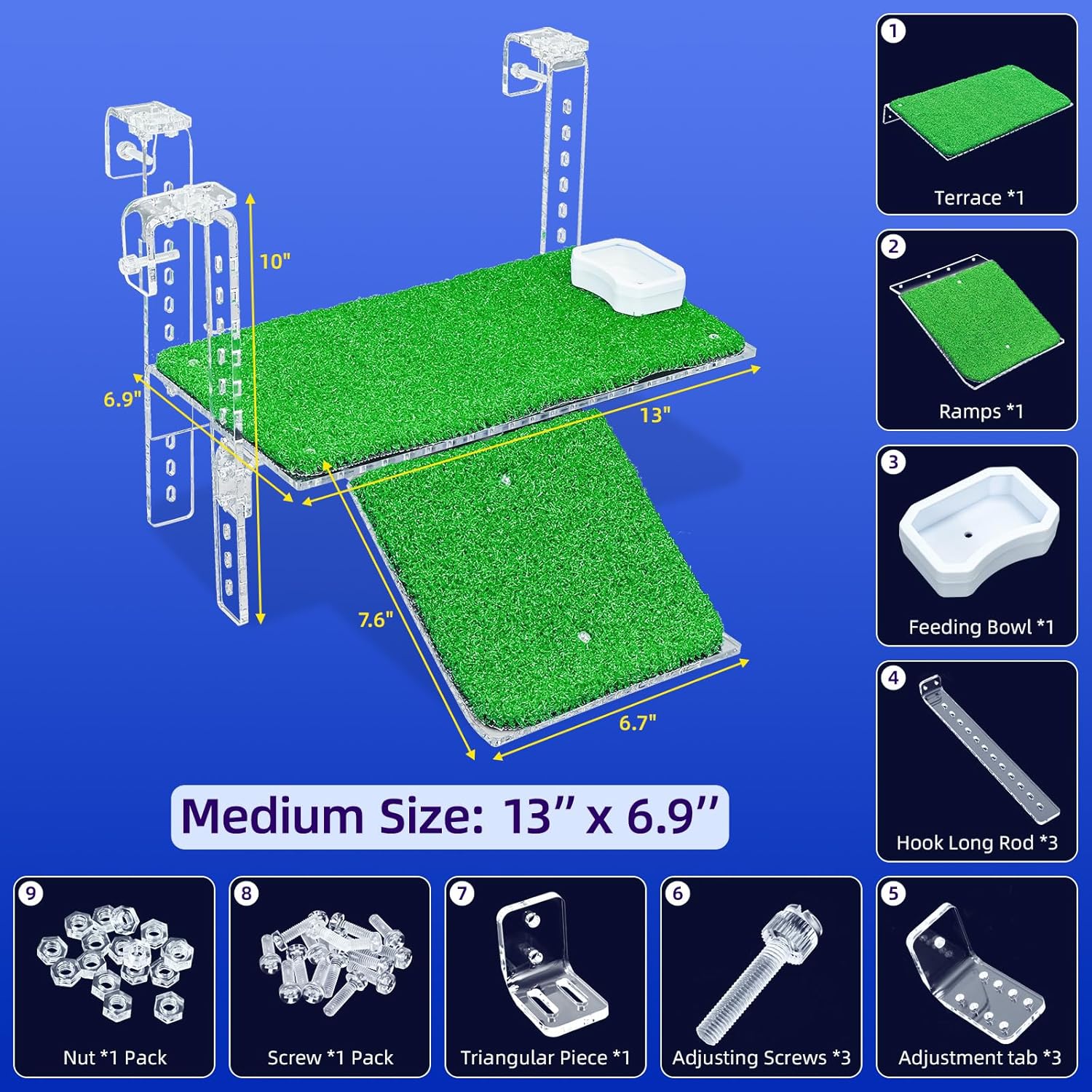- 【Crystal Clear, Sturdy, and Aesthetic】Made from high-quality transparent acrylic, this turtle basking platform is not only sturdy but also visually appealing. Its sturdy construction ensures long-lasting use, while the removable artificial grass surface makes cleaning easy. It’s the perfect addition to any turtle tank or turtle dock.