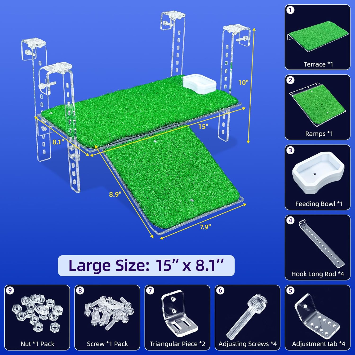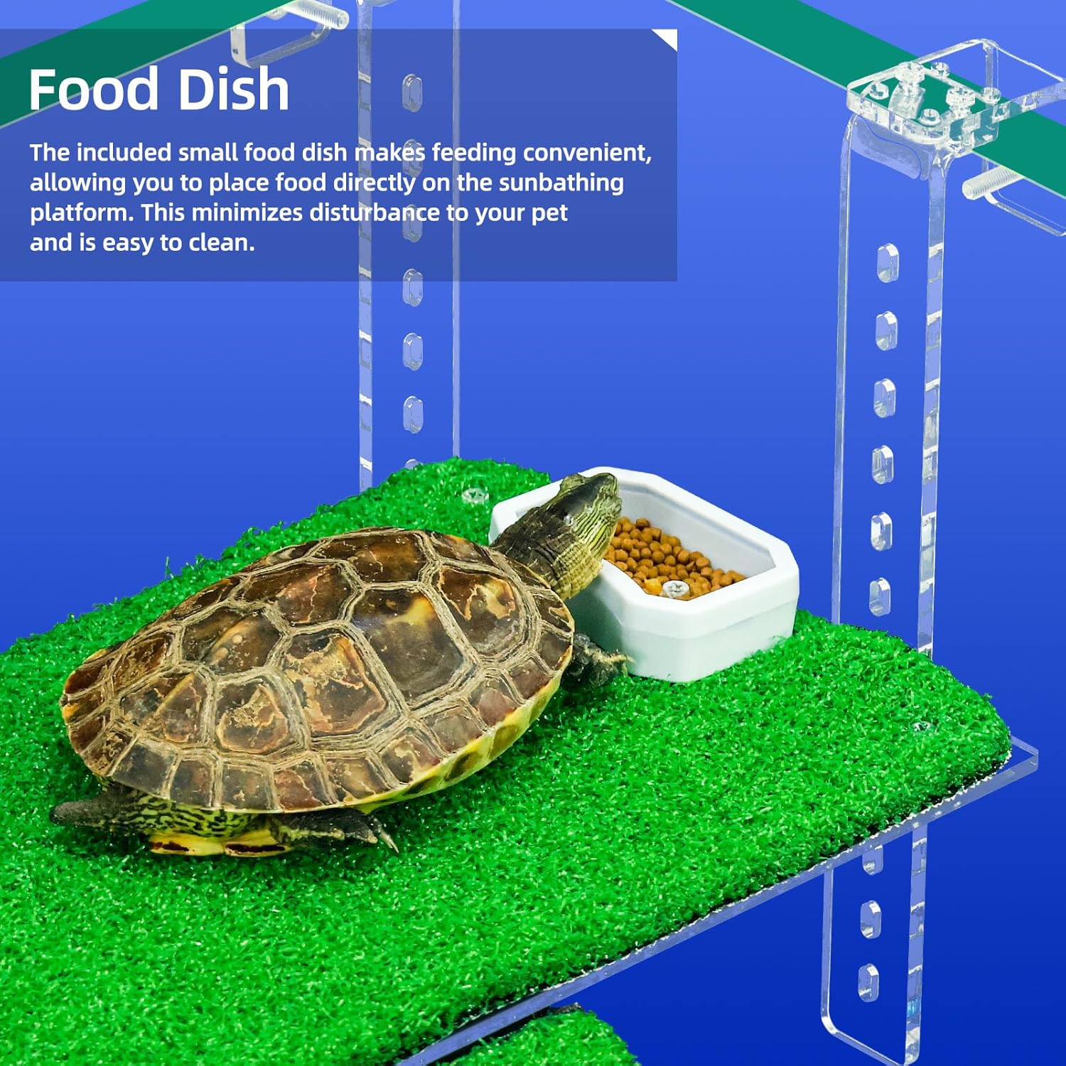 - 【Crystal Clear, Sturdy, and Aesthetic】Made from high-quality transparent acrylic, this turtle basking platform is not only sturdy but also visually appealing. Its sturdy construction ensures long-lasting use, while the removable artificial grass surface makes cleaning easy. It’s the perfect addition to any turtle tank or turtle dock.