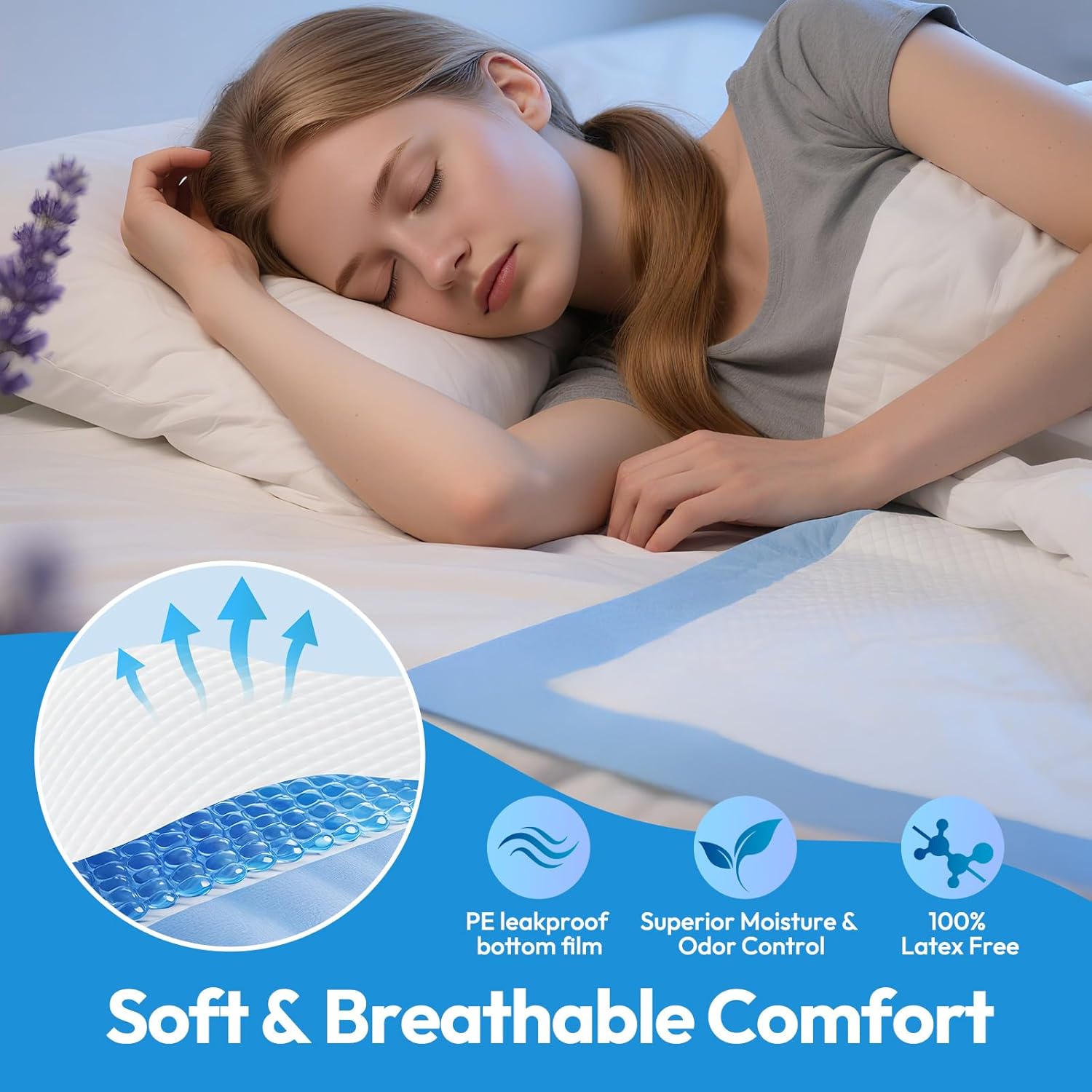 - Odor Control & Breathable Comfort: Our absorbent pads feature a soft and breathable top layer, made from hypoallergenic material which can effectively reduce friction and skin irritation, ensuring comfort and dryness for elderly, baby and pets all day long