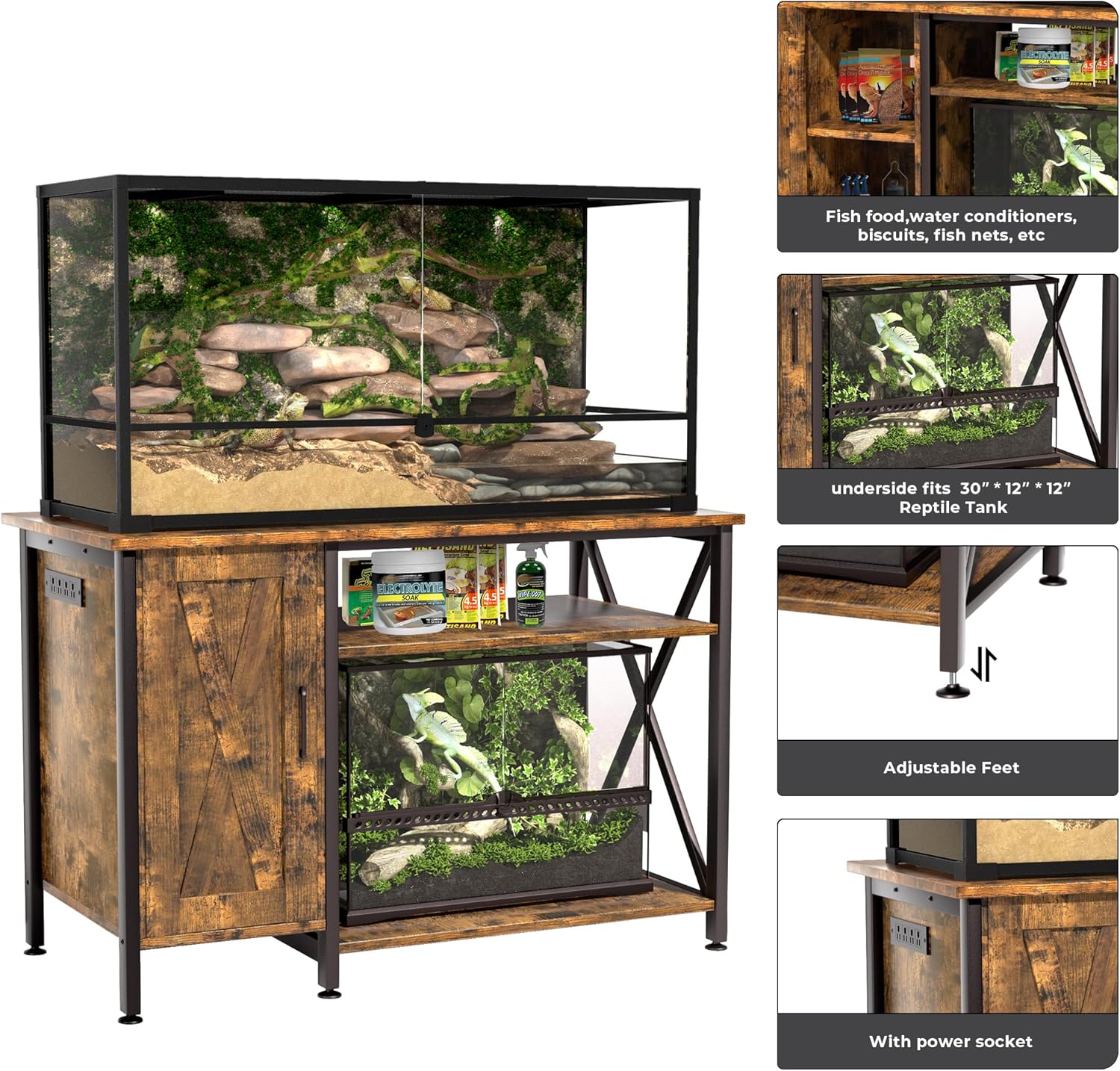 - Suitable for 120-Gallon Reptile Tanks - This terrarium stand is specially designed for 120-gallon reptile tanks, with a tabletop size of 48 x 24 inches. Sturdy and durable, it can support up to 1100 lbs, making it the perfect choice for a reptile tank stand. It provides a safe and stable habitat for your reptile pets. (Note: Does not include the water tank.)