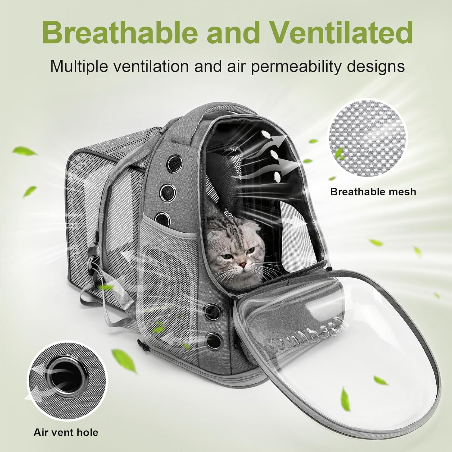 Expandable Cat Backpack,Cat Bubble Backpack Carrier for Carrying Cats, Pets and Small Dogs,Airline-Approved,Designed for Travel, Hiking, Walking,Car (Grey
