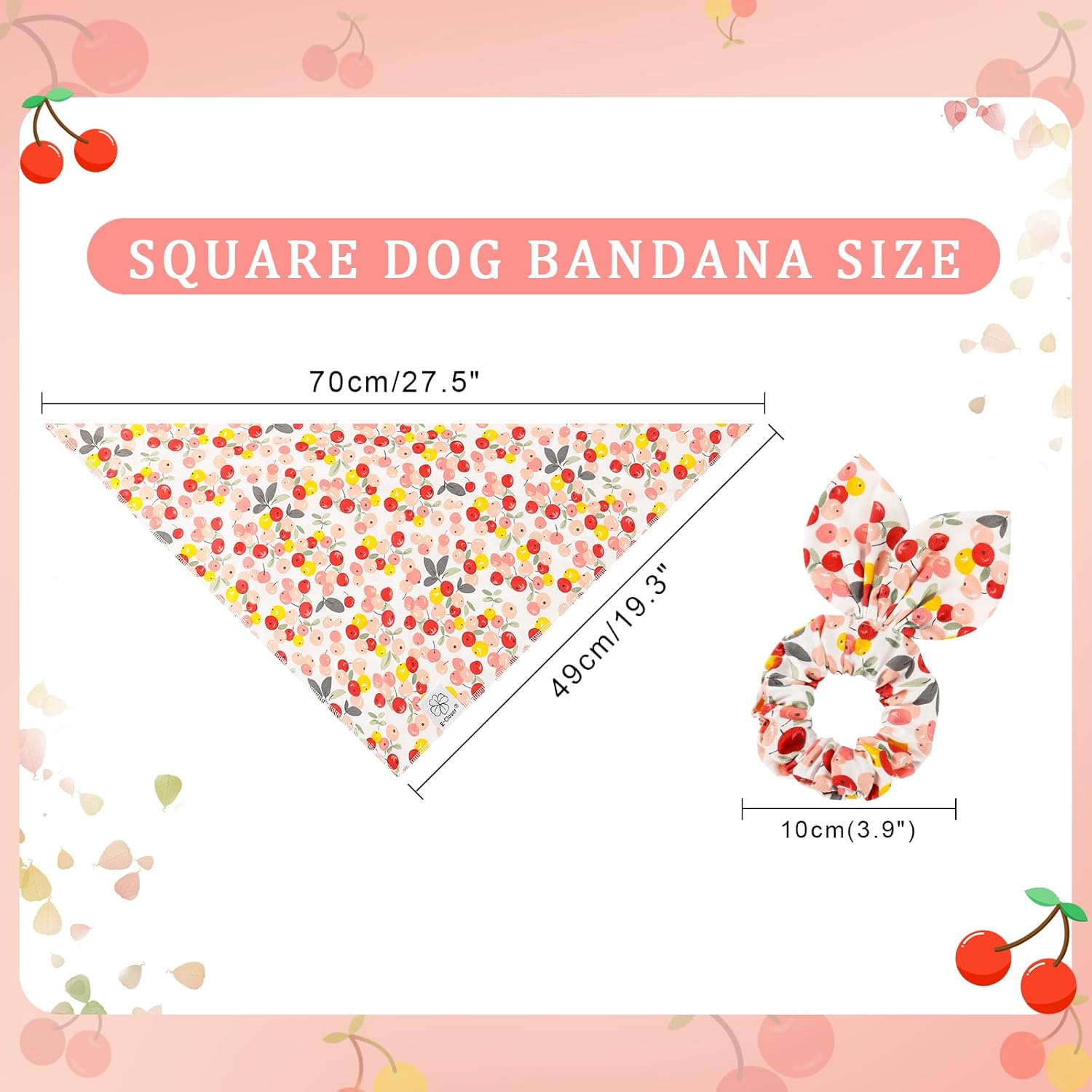 E-Clover Pink Floral Dog Bandanas & Matching Scrunchie Set Cute Dog Scarf Bibs Pet Bandana with Bow Tie for Medium Large Dogs Owner Mom Spring Summer