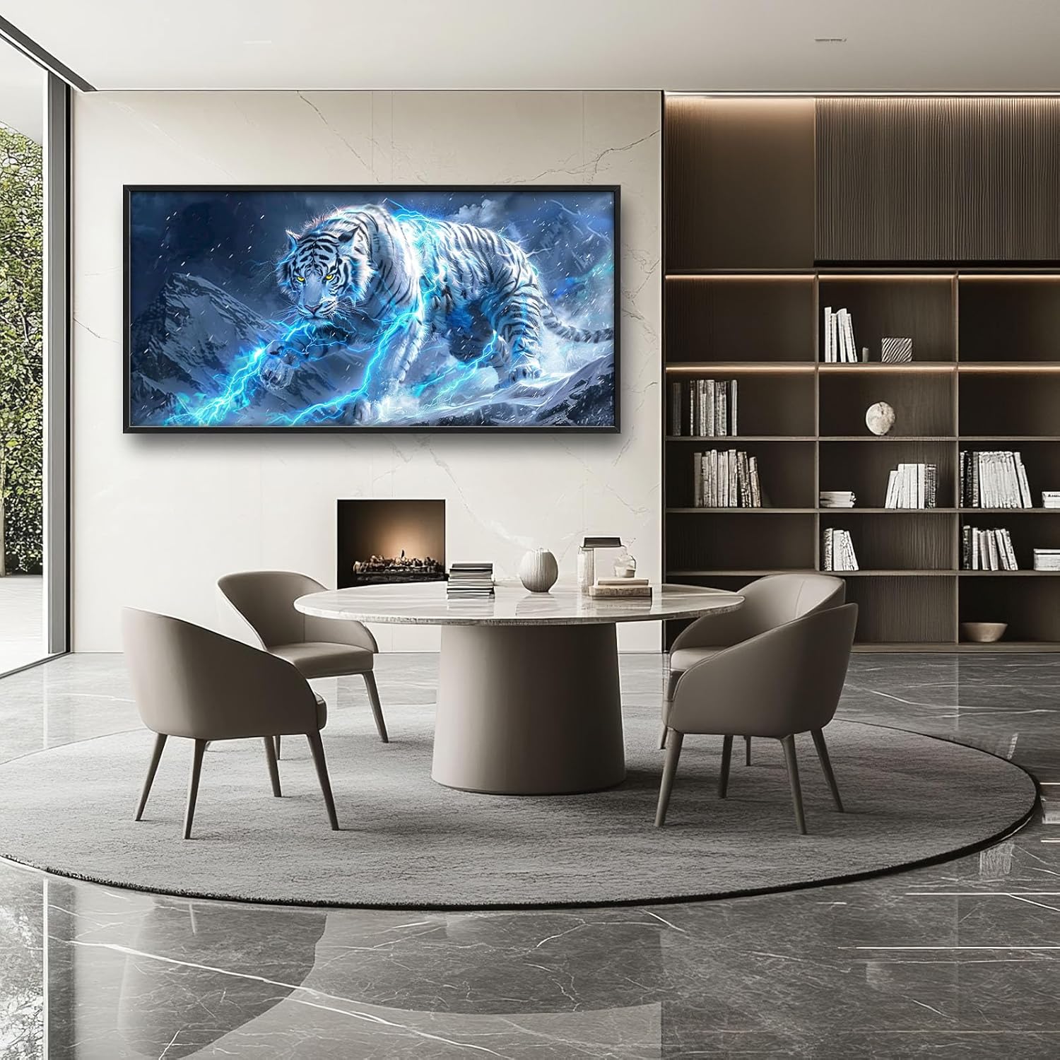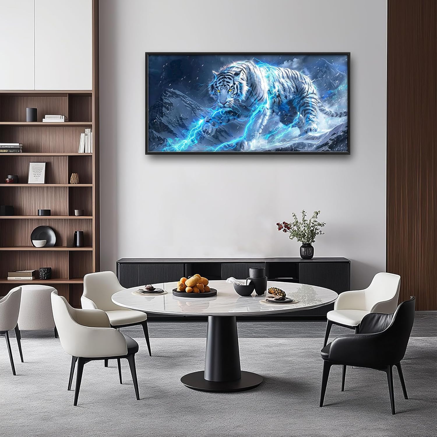 Quorin White Tiger Large Wall Art Wild Animal Pictures Lightning Tiger Wall Decor Snowy Mountain Canvas Print Painting Artwork for Bathroom Living Room Bedroom 60L x 30W