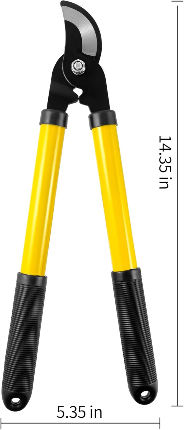- ๐ปPOWERFUL 14-INCH LOPPER โ Effortless Cutting & Precision โ Engineered for clean, smooth cuts, our razor-sharp, hardened steel lopper blades slice through thick branches and tough stems with ease. The long ergonomic handles provide extra leverage to reduce effort and hand strain, making pruning effortless.