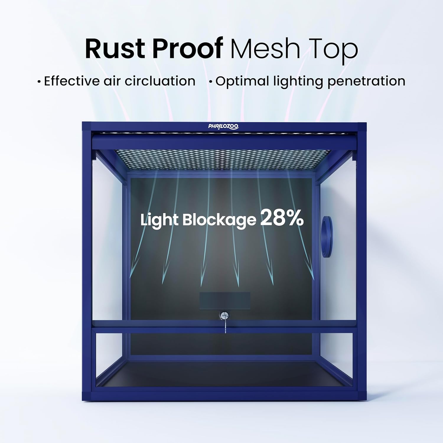 - 【Perfect for Beginners】Phailozoo 24-gallon reptile tank with single grommet measures 18'Lx18''Wx18''H. It only weighs 16.5 pounds. Easily assembled in six steps, perfect for first time reptile keepers.