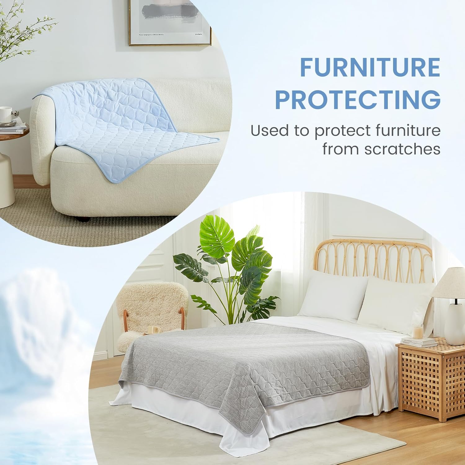 Cozy Bliss Leakproof Cooling Blanket for Large Dogs – Q-Max>0.4, Durable & Washable Dog Cooling Mat for Hot Weather, Soft Pet Throw & Couch Protector for Dogs & Cats, 40x60 Inch, Heather Cool Blue