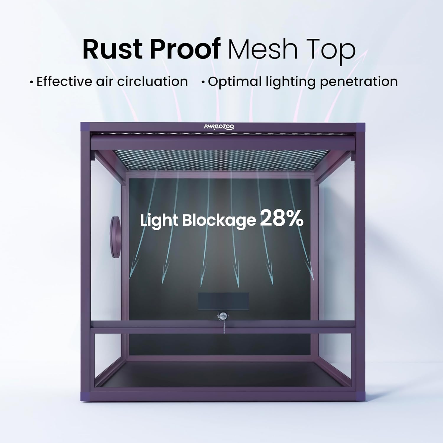 - 【Perfect for Beginners】Phailozoo 24-gallon reptile tank with single grommet measures 18'Lx18''Wx18''H. It only weighs 16.5 pounds. Easily assembled in six steps, perfect for first time reptile keepers.