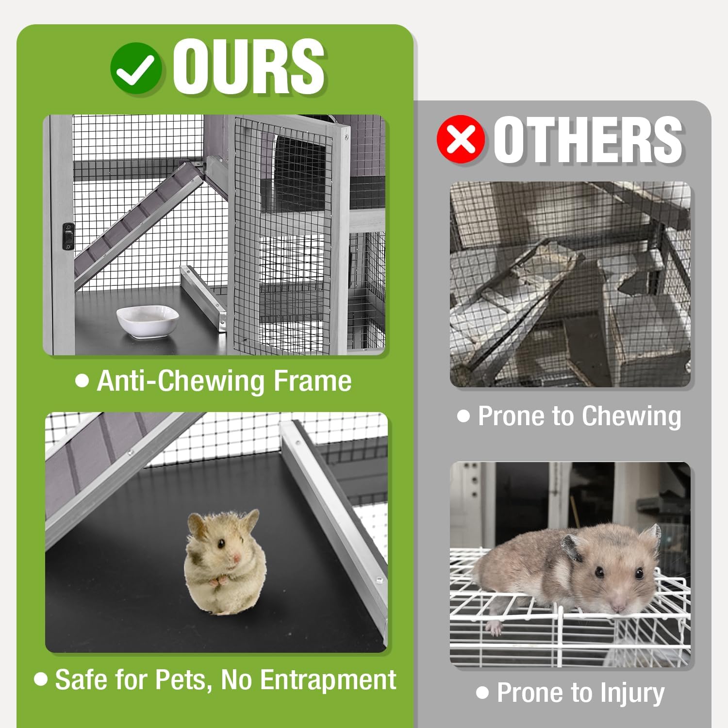 - ใAnti-Chewingใ๐ชTo address the natural chewing behavior of small animals, the edges of the ramps and platforms are covered with a durable aluminum alloy material. This chew-resistant coating helps prevent your pets from damaging the cage while keeping your animals safe.