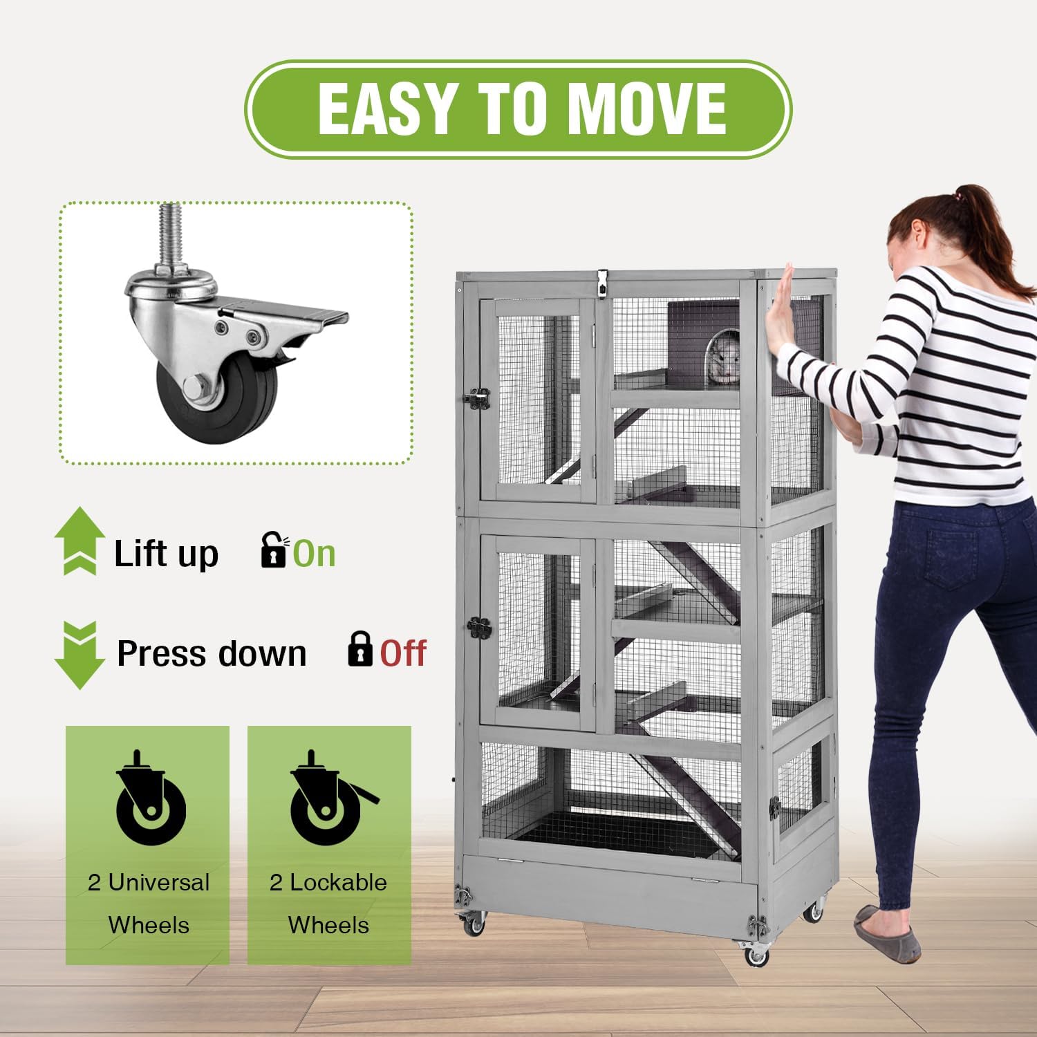 - ใ5 Levels Space of Ferret Cagesใ๐ชExtra Large Space: 27.6"L ร 20"W ร 55.2"H. The small animal cage with five climb-up ramps and hut, your little animal friends will have five times the fun. and five doors of the squirrel cage can be opened for easy catching, and observed pets also keep the air circulating.Perfect for adult small pets like guinea pigs, squirrels, chinchillas, ferrets, rabbits, hedgehogs, etc.