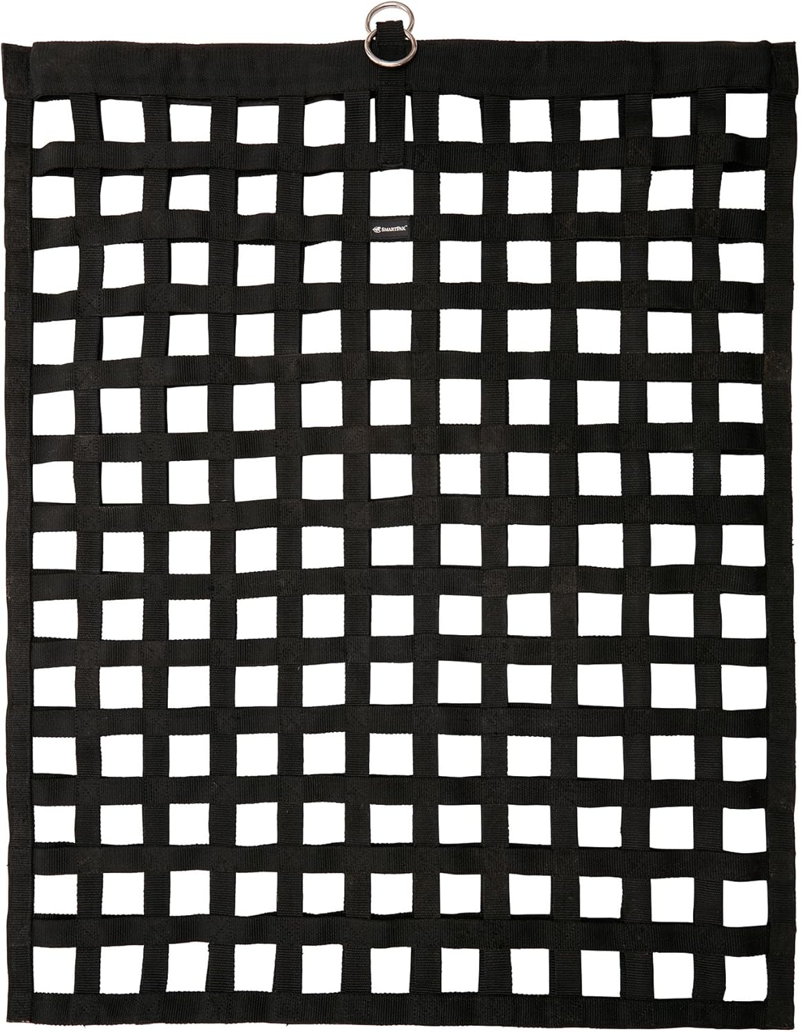 SmartEquine Slow Feed Hay Bag for Horses | Hay Feeder Net with Resistant Nylon | Gator Mouth Enclosure for Easy Loading | Fits 10-15 lbs of Hay | 4 Flakes Bag | 37" x 30" | Black | 2" Holes