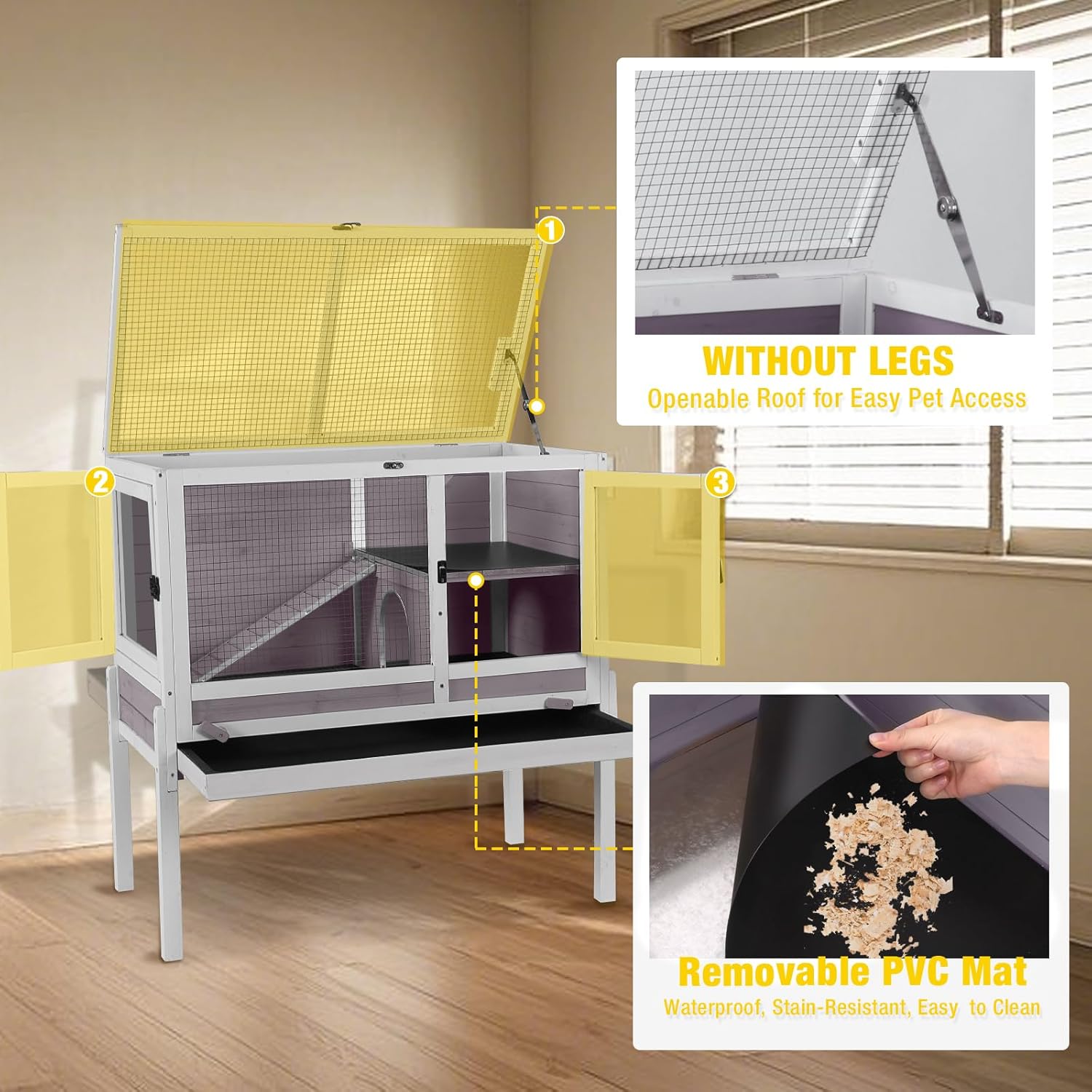 - Easy-Clean Removable Tray System: Includes a deep slide-out tray + removable wire floor. Side access door simplifies waste removal for a hygienic habitat.