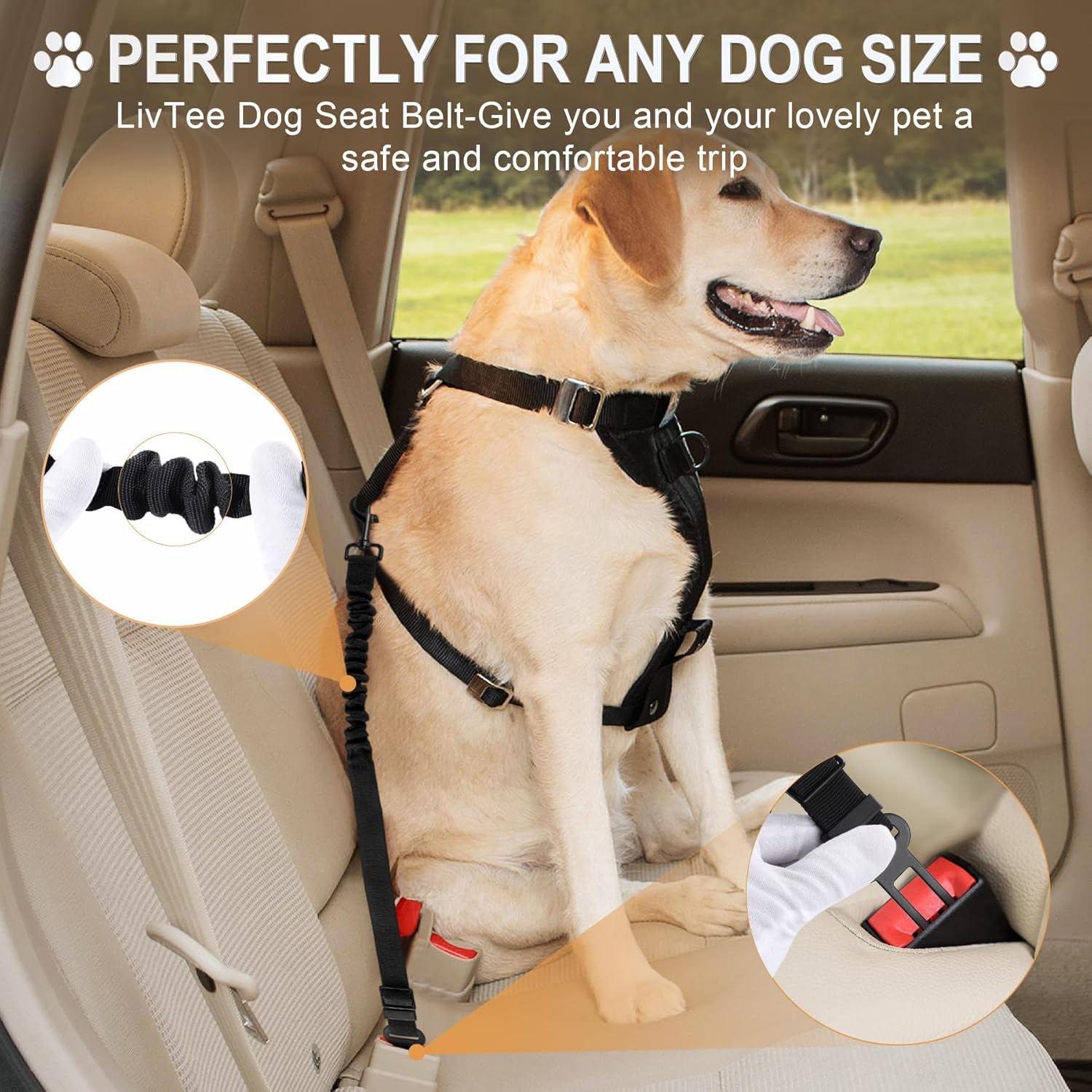 LivTee Dog Seat Belt for Car, Retractable Pet Safety Harness, Adjustable Nylon Dog Seatbelt Leash, Comfortable Dog Accessories for Vehicles (Black-1PCS)