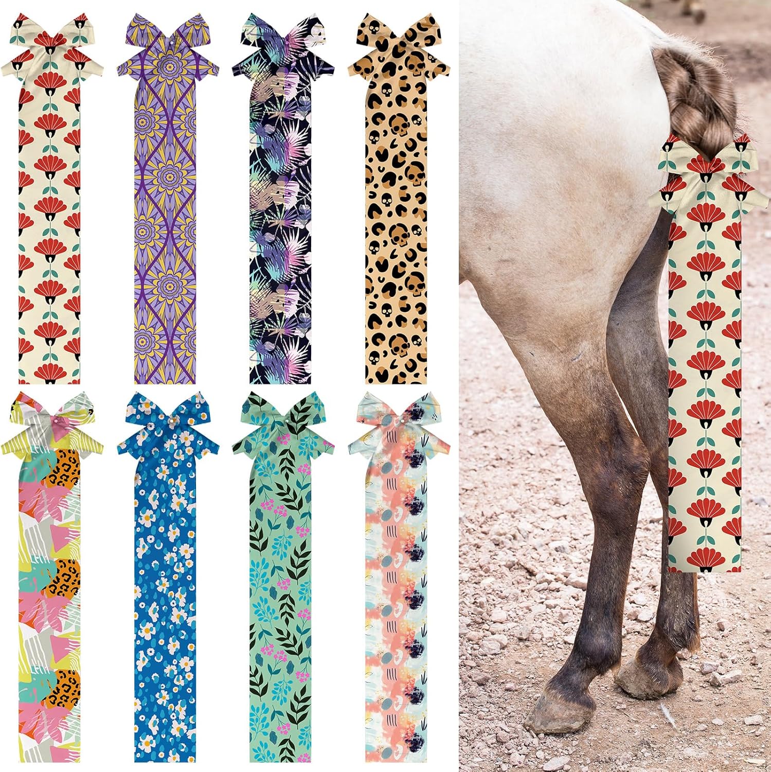 - Colorful Design: 8 designs, diamonds, leopard prints, stars and other patterns, bright colors, add vitality to the ponytail; True color restoration enhances the appearance of the horse, suitable for performances, riding and other occasions