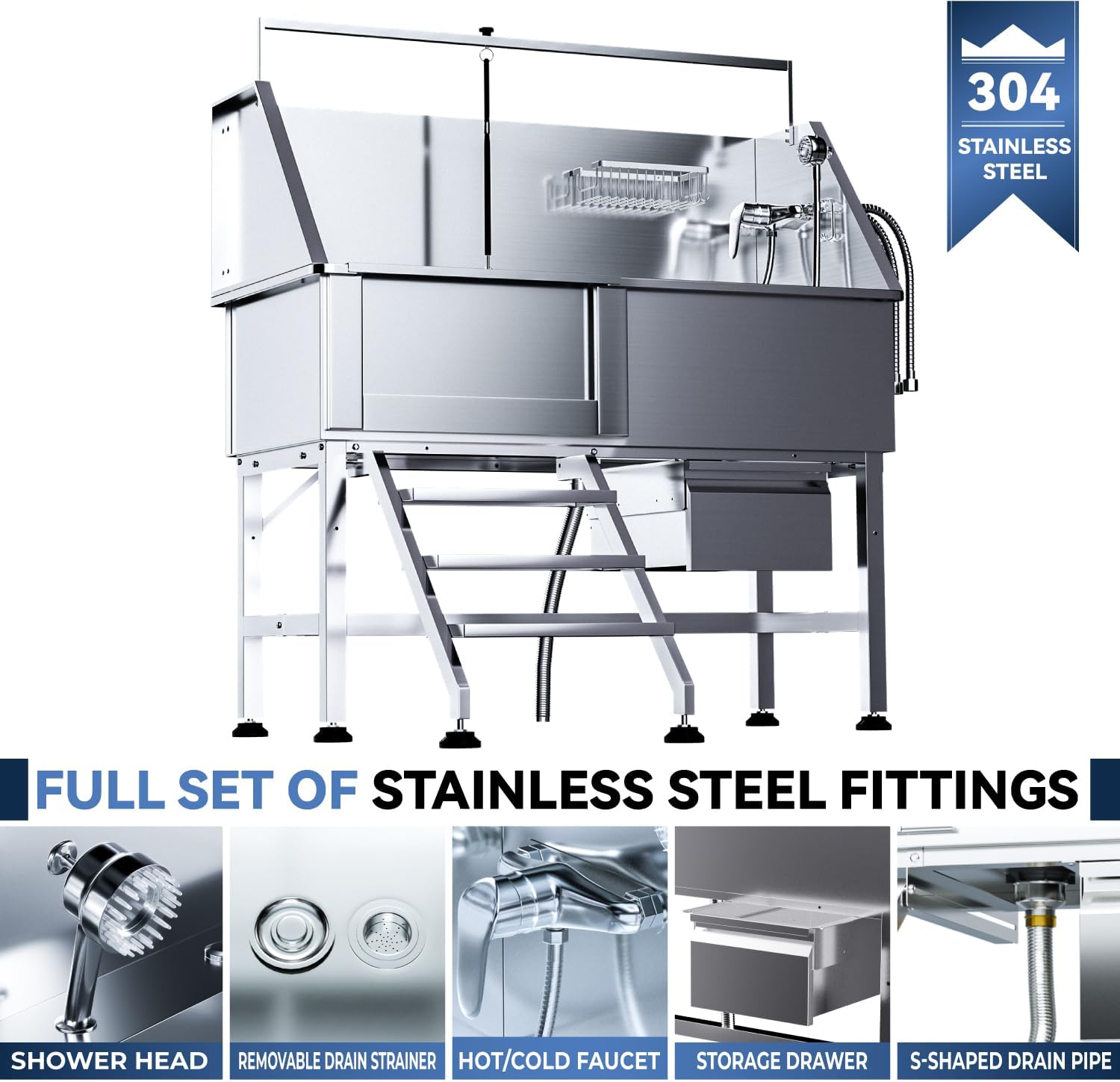 - Tzechkii dog washing station is made from premium 304 stainless steel, offering excellent rust and corrosion resistance. Even with constant exposure to water and grooming products, it remains durable and intact. Additionally, it can withstand harsh outdoor conditions like sun exposure, heavy rain, and snow, making it perfect for both indoor and outdoor use