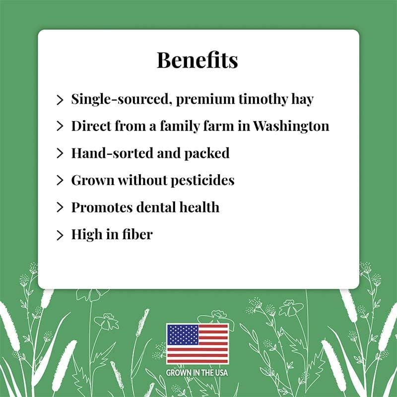 - Single-sourced, premium timothy hay