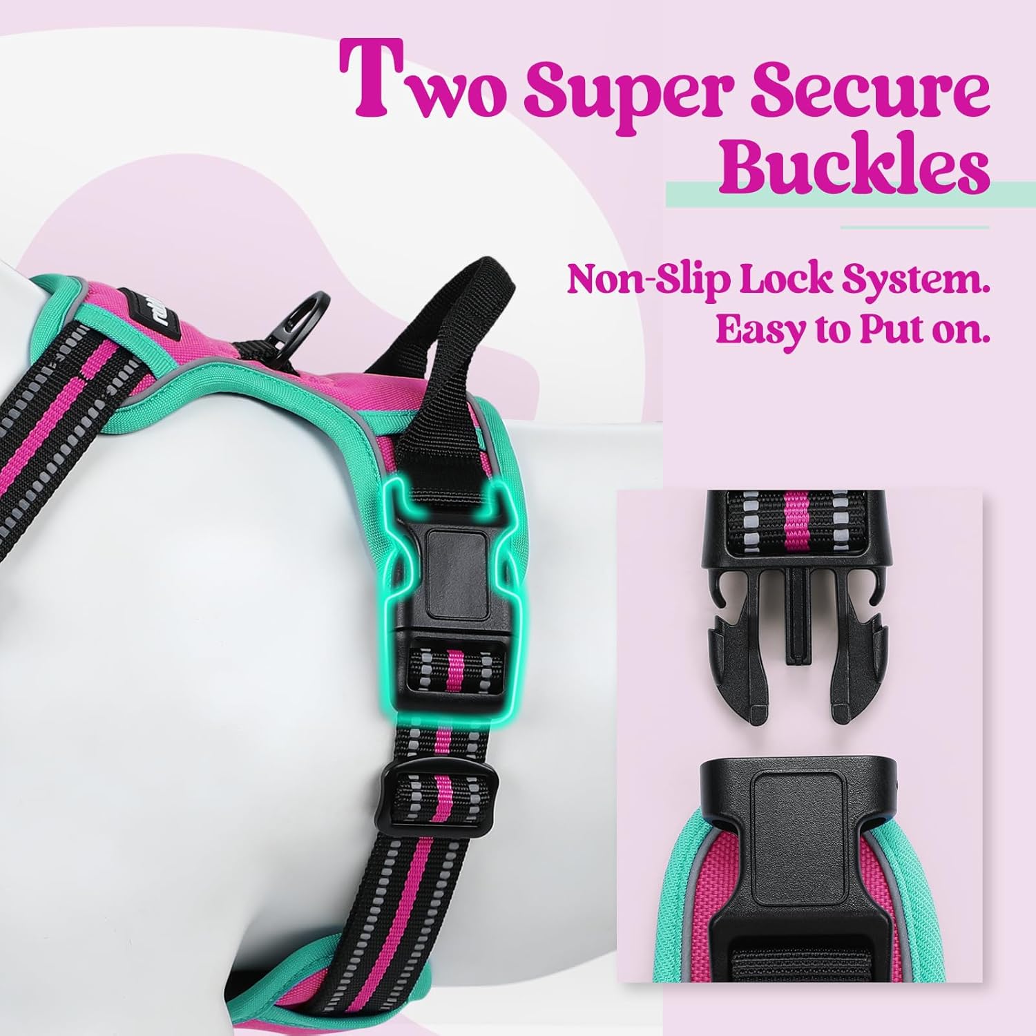 rabbitgoo Dog Harness No Pull with 2 Leash Clips, Adjustable Soft Padded, Reflective Oxford No Choke Pet Vest with Easy Control Handle for Large Dogs, Hot Pink & Turquoise, S