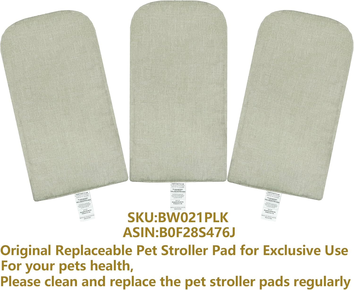 ROODO Pet Stroller Inner Pad for Exclusive Use,Original,Replaceable,Easy to Clean,Set of 3 pc(Light Khaki)