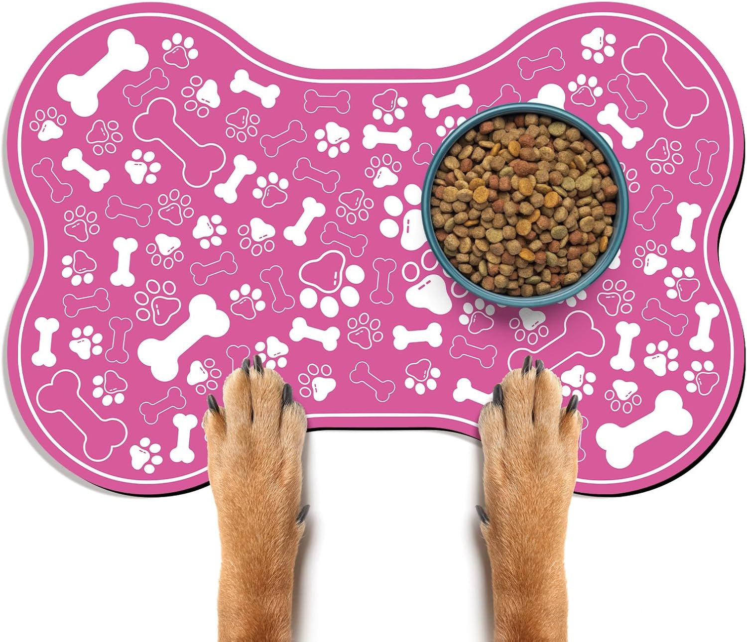 - CUTE AND FASHIONABLE DESIGN: Our pet feeding mats are designed with dog paw and bone motifs, very interesting. It is available in a variety of colors, sizes and shapes to provide a unique dedicated space for your pet's food and water bowls, and you can choose a style that matches your home décor.