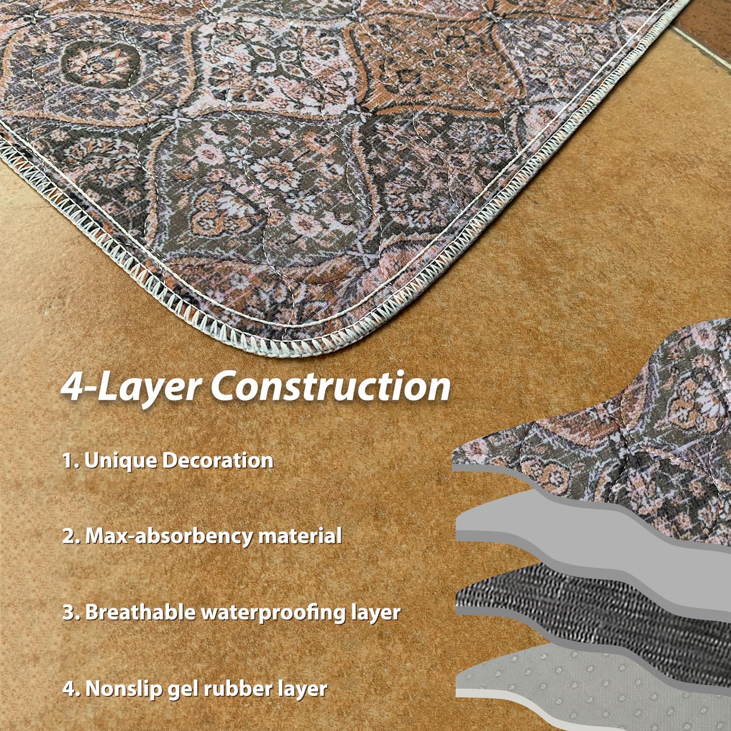 nunubaby Washable Pee Pads for Dogs, Stylish, Non-Slip and Leak-Proof Pee Pads. Reusable Potty Pads for Dogs for Crates and Floors.(Brown/Multi, 54" x54")