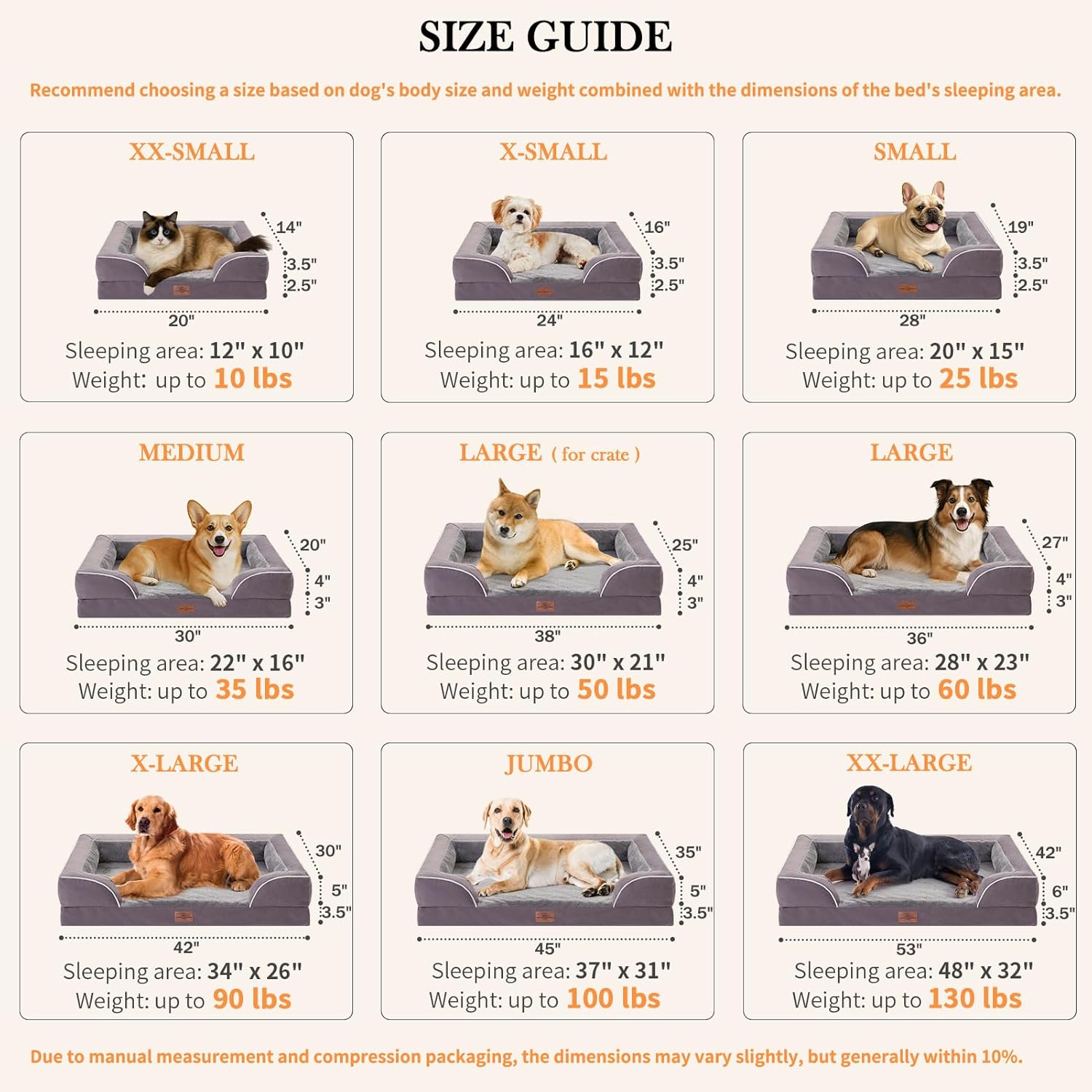 Comfort Expression Large Dog Beds Waterproof Orthopedic Foam Dog Sofa Beds Comfy Pet Bed with Washable Removable Cover & Non-Slip Bottom(Large,Purple)