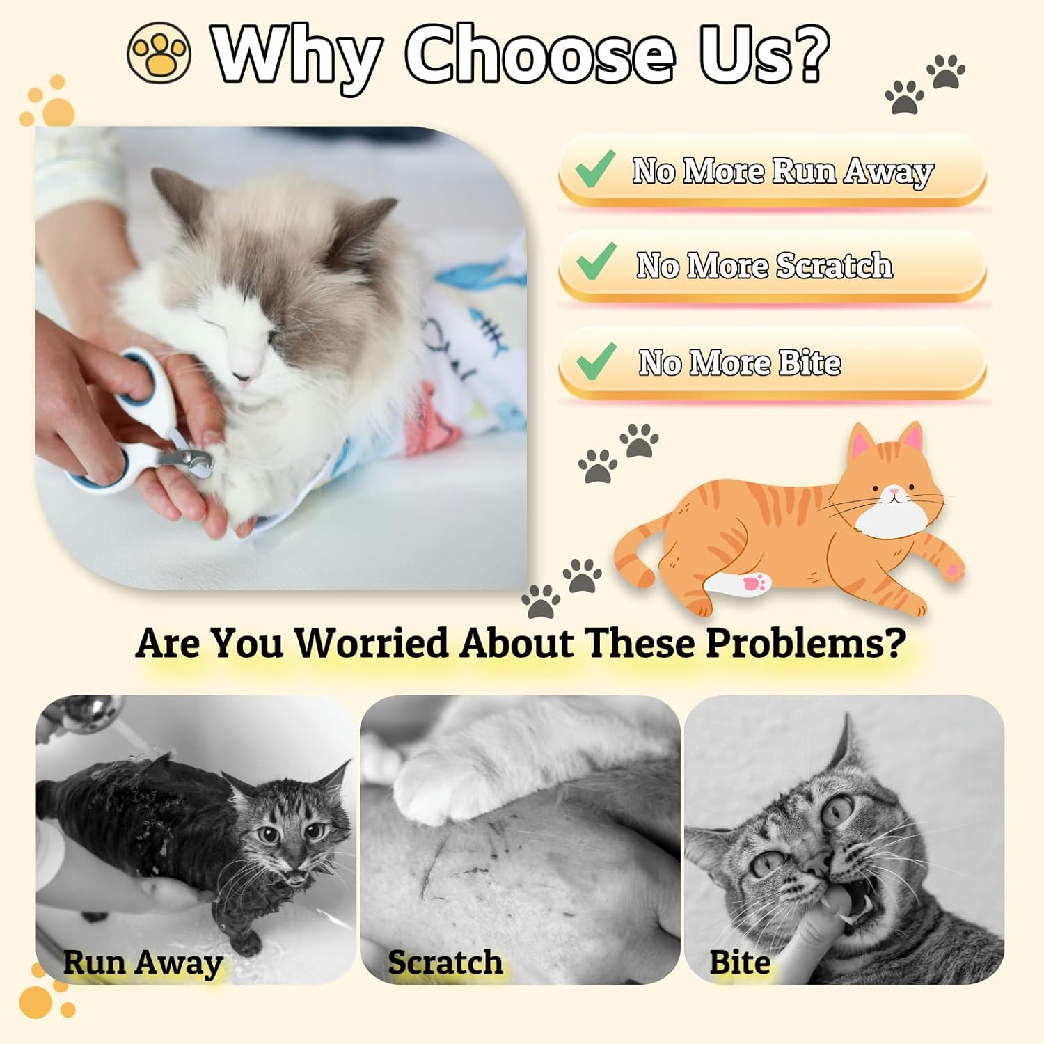 - 【Multifunctional Cat Wrap】Whether you need to trim nails, clean ears, brush teeth or administer medication, administering injections, and more, our cat swaddle wrap can meet your cat care needs. Its suitable size and lightweight design make it the best choice for daily cat care.