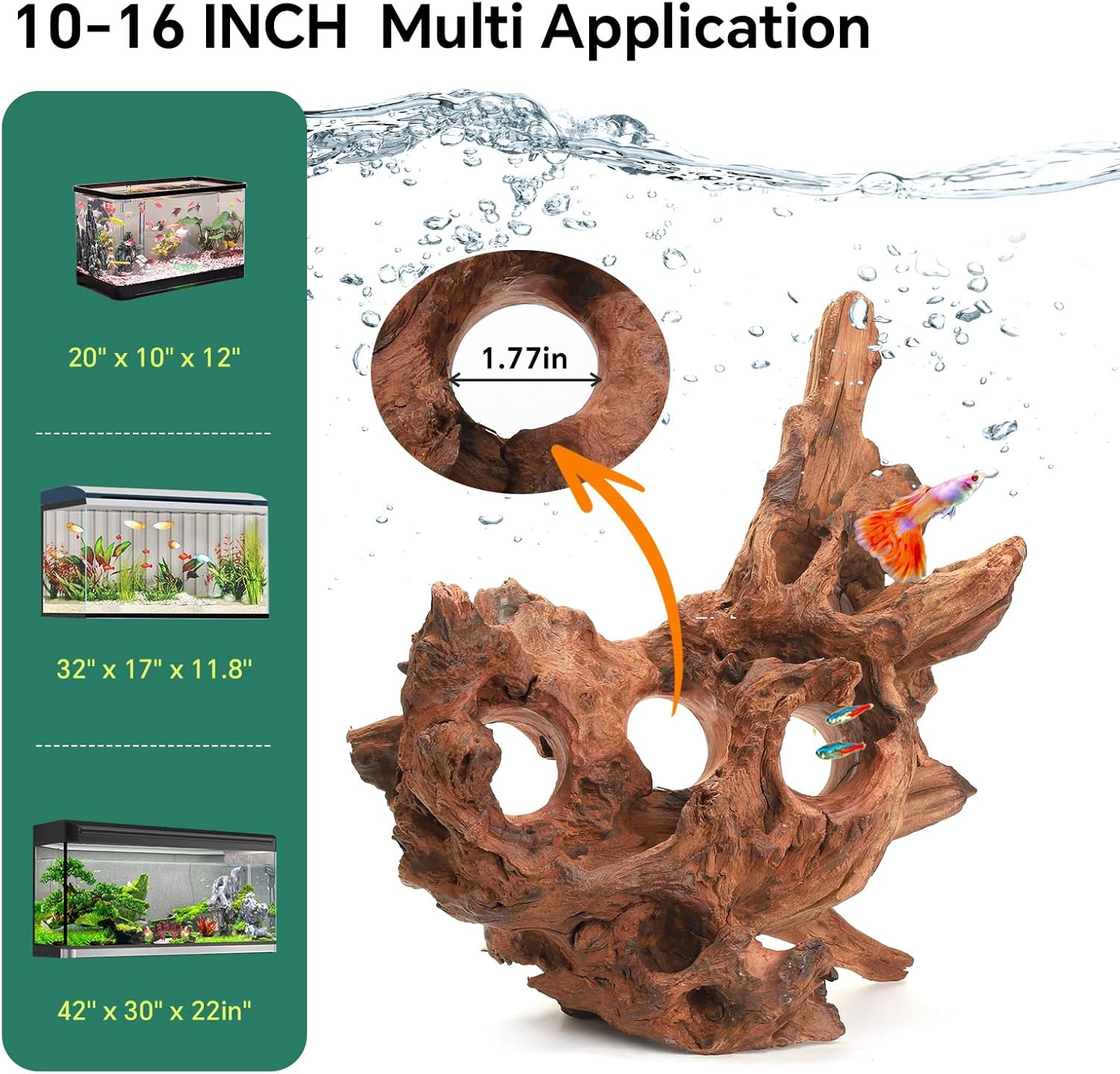 Driftwood for Aquarium Natural Aquarium Wood for Aquascaping Fish Tank Decorations Reptile Tank Decor (Porous Natural Driftwood 10-16“)