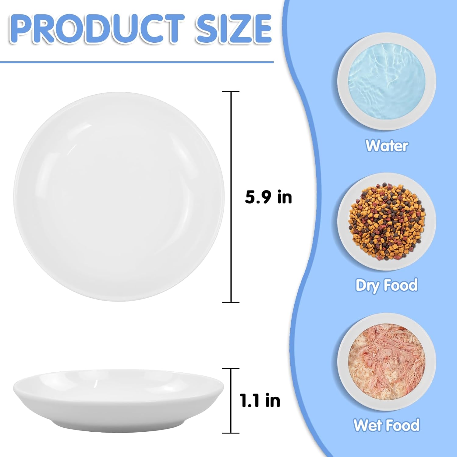 - ๐พใ6 Cute Cat Bowls Set to Meet Various Needs of Multi-Cat FamiliesใThe white bowls make the food look more delicious, easier to attract the cat's attention and increase the cat's appetite. The 6 white cat bowls can easily meet the various needs of families with multiple cats and other pets: puppies, rabbits, hamsters. The cat food bowl can also be used to hold different foods: wet and dry food, cat snacks, kitten milk, water.