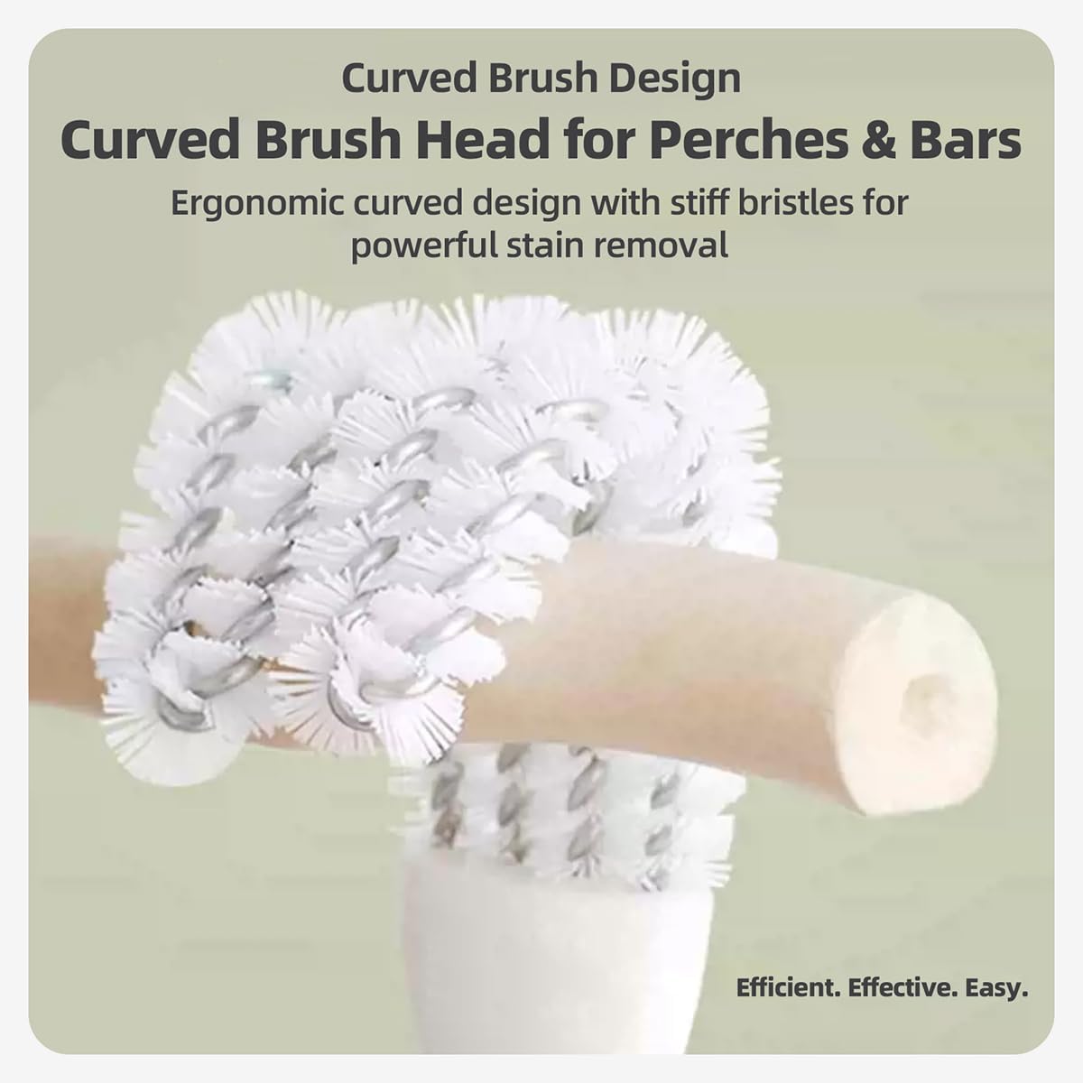 - Curved Brush Head for Precision Cleaning — Flexible angled bristles contour around perches, feeders, and cage bars to scrub stubborn droppings and food residue from tight spaces, ensuring thorough sanitation for parrots, cockatiels, and other pet birds