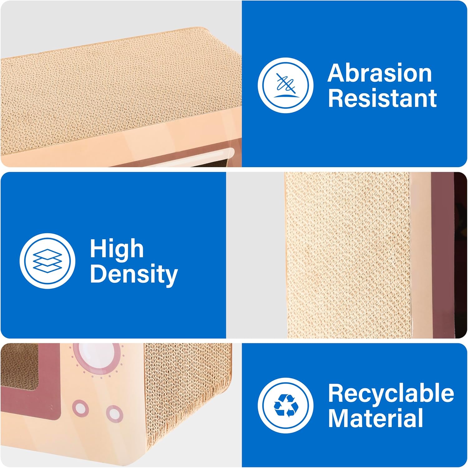 - Eco-Friendly & Safe: Constructed from 100% recycled corrugated cardboard, non-toxic, and glue-free materials, ensuring a safe and eco-conscious choice for your cat's entertainment. Dimensions: 17.3L13.4W9.1H inches.