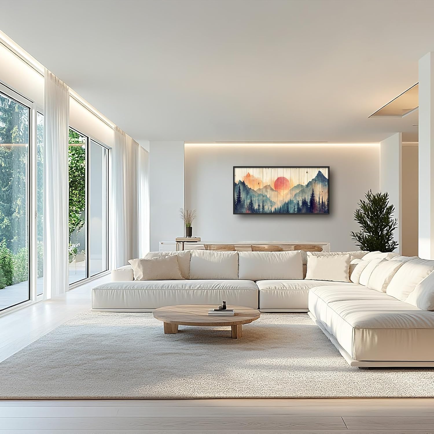 Framed Large Cabin Mountain Wall Art for Living Room, Oversized Rustic Forest Wall Decor, Rustic Nature Landscape Canvas Painting Sunset Pictures Home Decoration for Bedroom Office 60"x30"