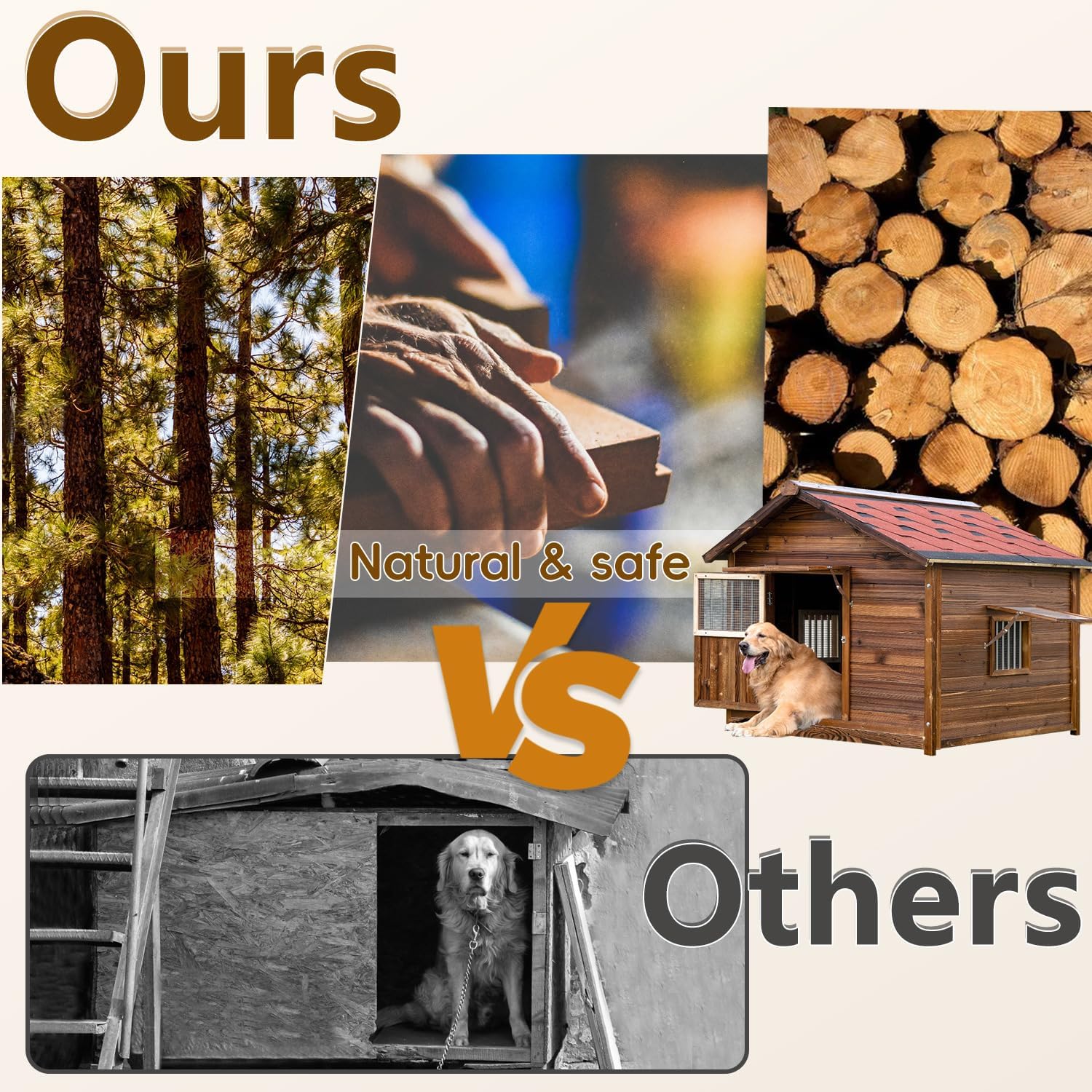 - 【Pet-friendly Material】The dog house outdoor is crafted from superior carbonized pine wood. It includes adjustable PVC windows that allow for ventilation and light, ensuring your pet enjoys fresh air inside.The waterproof roof, designed with multiple layers, provides exceptional weather resistance, making it suitable for all seasons.