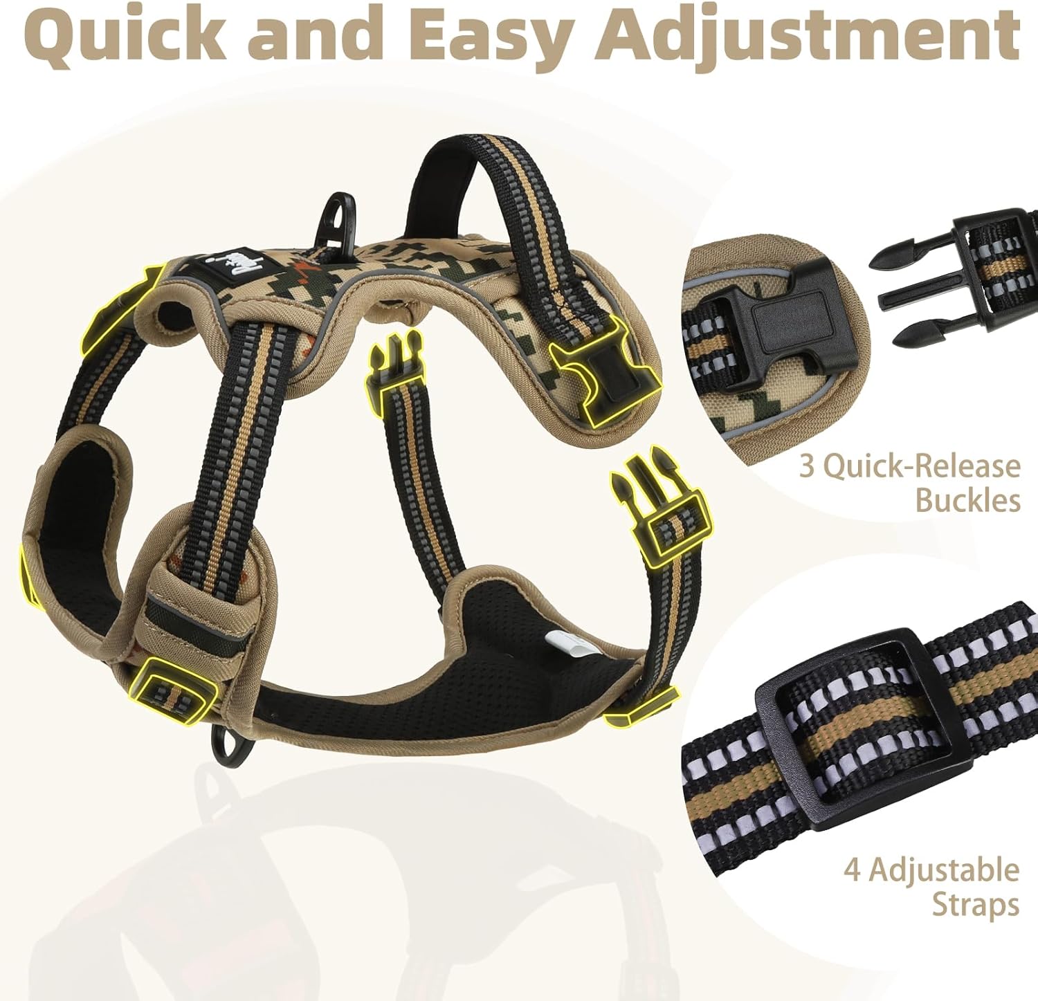 PUPTECK No Pull Dog Harness for Large, Adjustable Reflective Dog Harness with Handle Easy Control, Comfortable Soft Padded Pet Vest Harness for Extra Large Dogs, Camouflage XL
