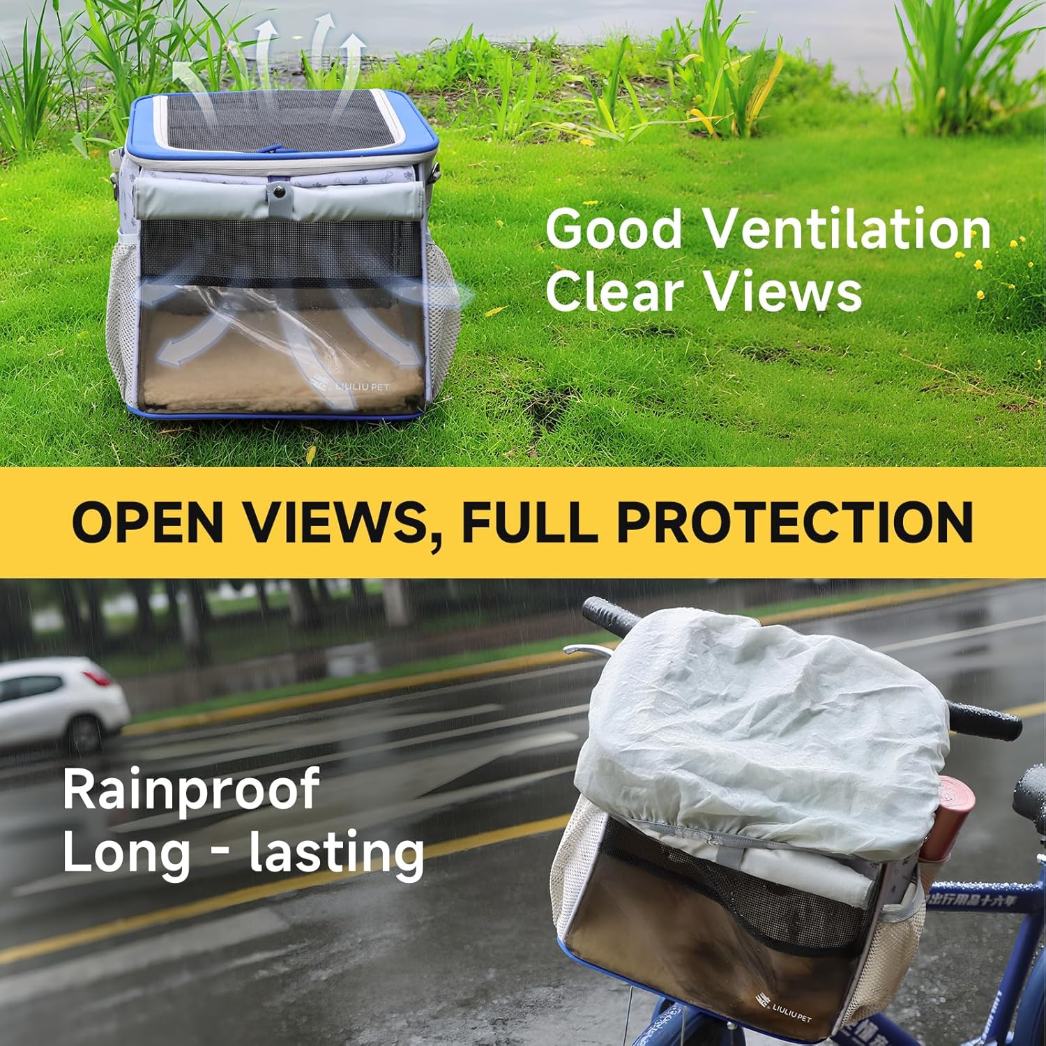 - LIULIUPET Cat and Dog Backpack Carrier, Breathable Cycling Pet Bag with Mesh Ventilation, Portable Outing Traveling Pet Bag with Top waterproof fabric for Small, Medium Cats, Small Dogs, Blue