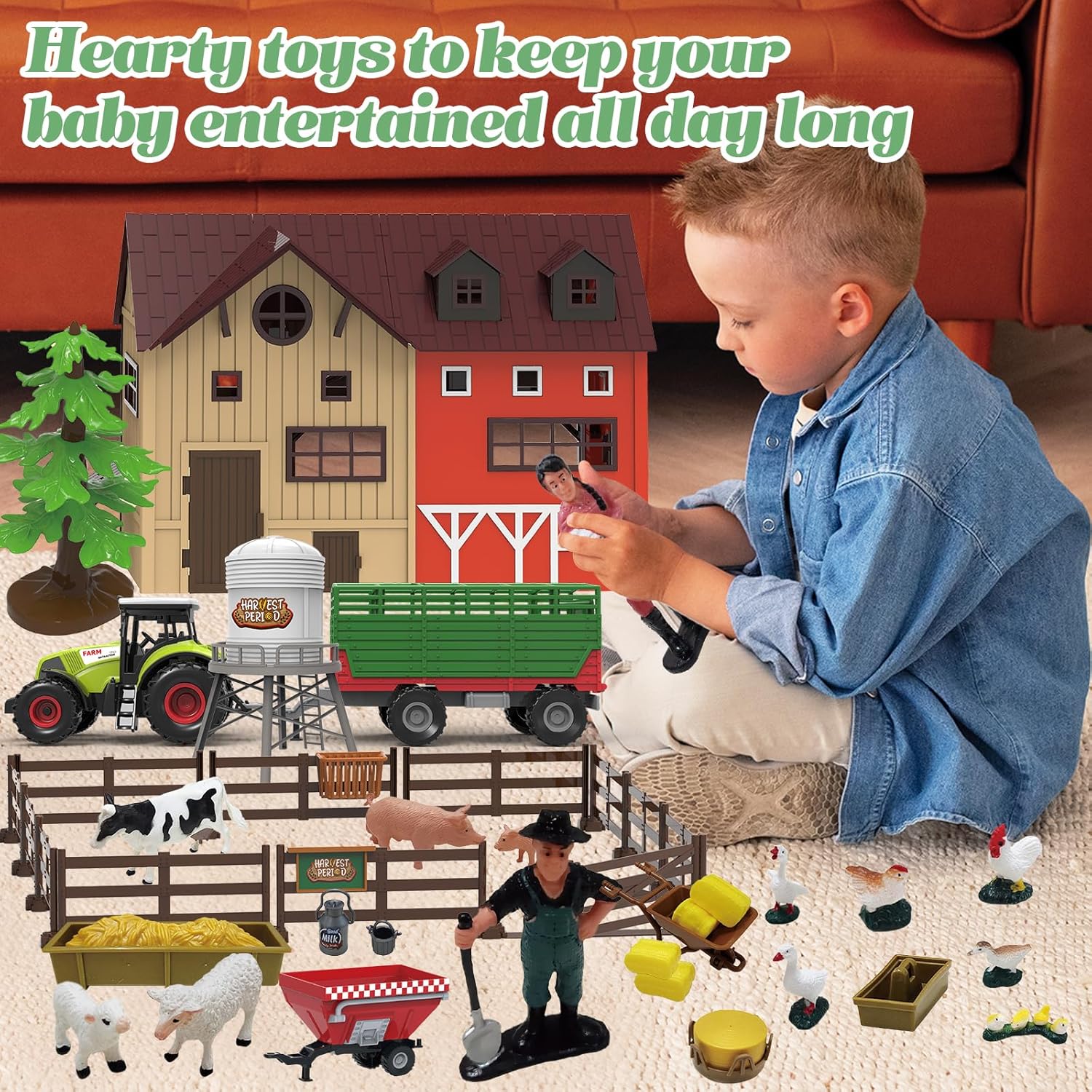 109PCS Farm Animals Toys Set Comes with Barn, Rice Storehouse, Rice Trolley, Milking shed, Farmer, Fence - Playset for Kids Toddlers Boys Girls 5+ Years Old