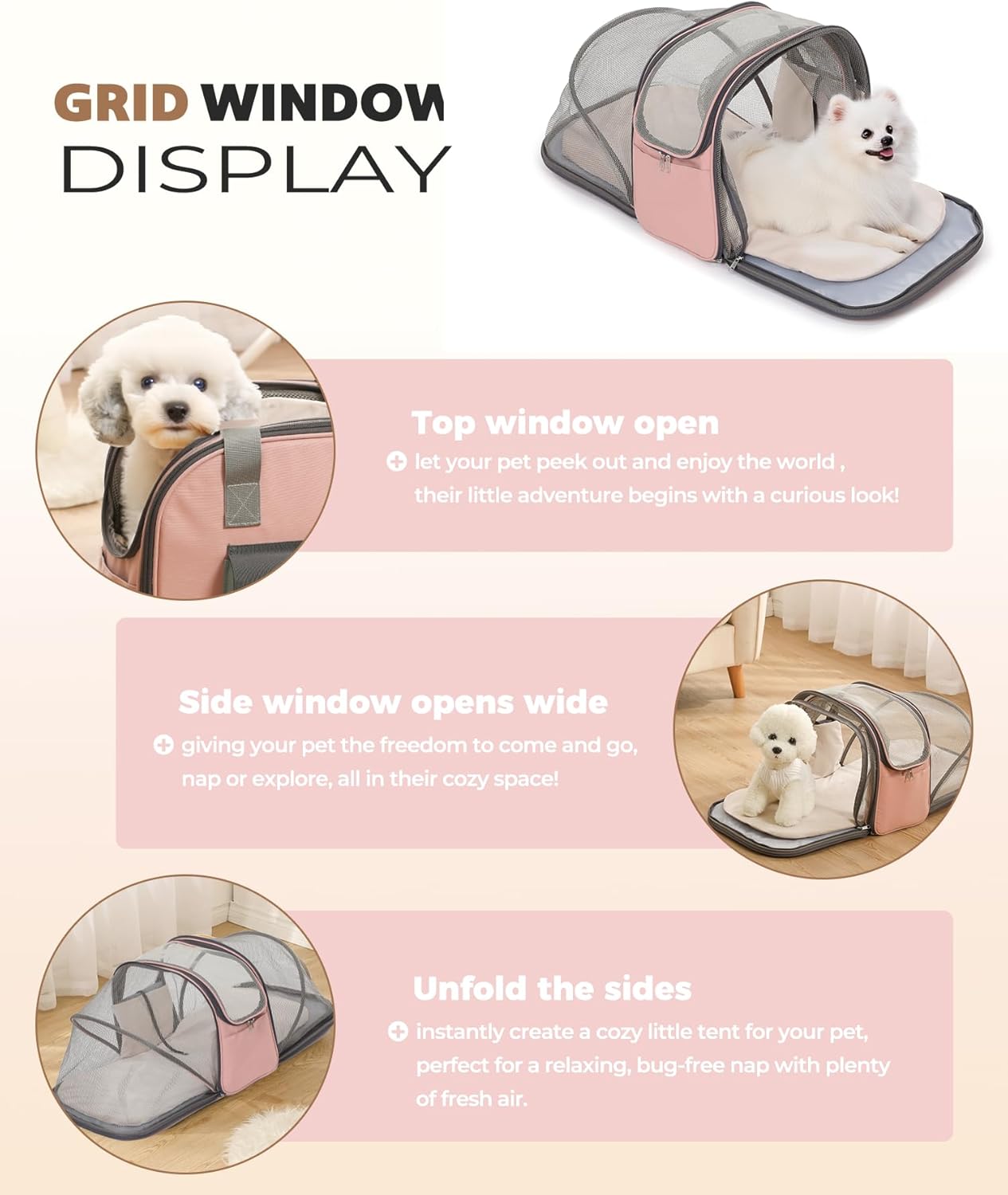 - Suitable for Small to Medium-Sized Pets: Designed for cats (e.g., Siamese, Ragdoll) and small dogs (e.g., Chihuahuas, Shih Tzus) under 25 lbs. The 32" expanded space ensures comfort for pets up to 12" tall, perfect for long trips or vet visits.