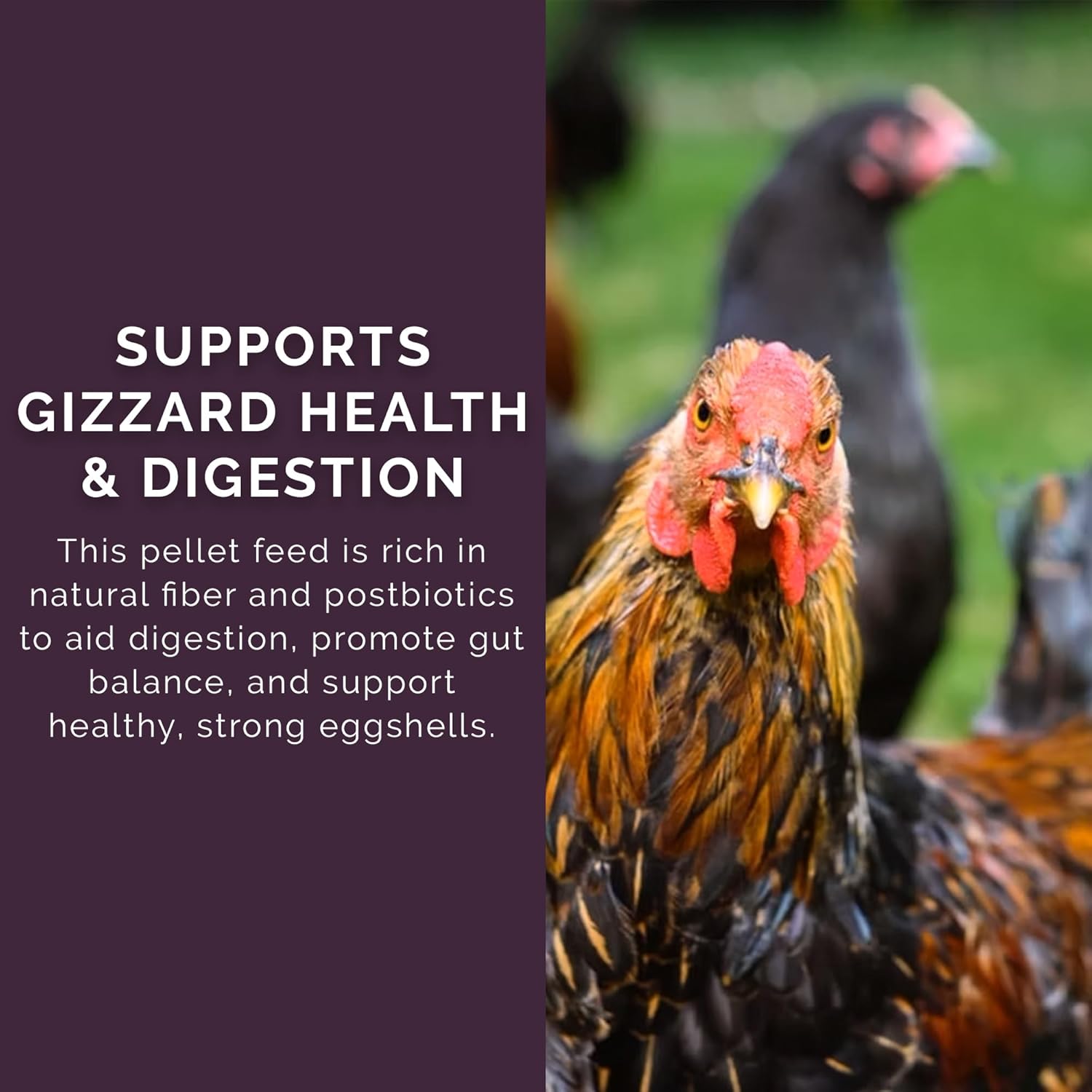 - Supports Gizzard Health & Digestion: This 40-pound bag of pellet feed is rich in natural fiber and beneficial nutrients to aid digestion, promote gut balance, and support healthy, strong eggshells.