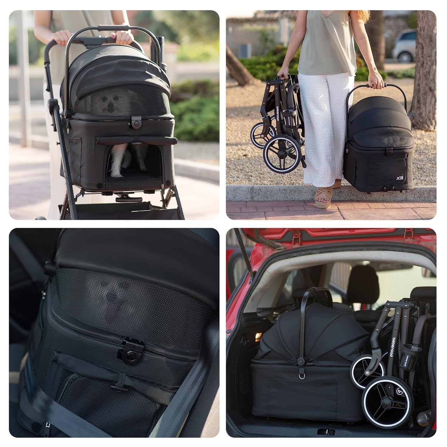 - ๐ถ One-button folding design: This pet stroller adopts a two-in-one design. You can quickly fold and unfold the stroller with just one click of a button. It only takes 1-2 seconds to open and fold. There is no need to disassemble the carrier. After folding, it can be pushed like a suitcase. The platform can be easily assembled without tools, making it easy to carry. It increases the convenience of using a pet stroller and makes your travel easier and more enjoyable.