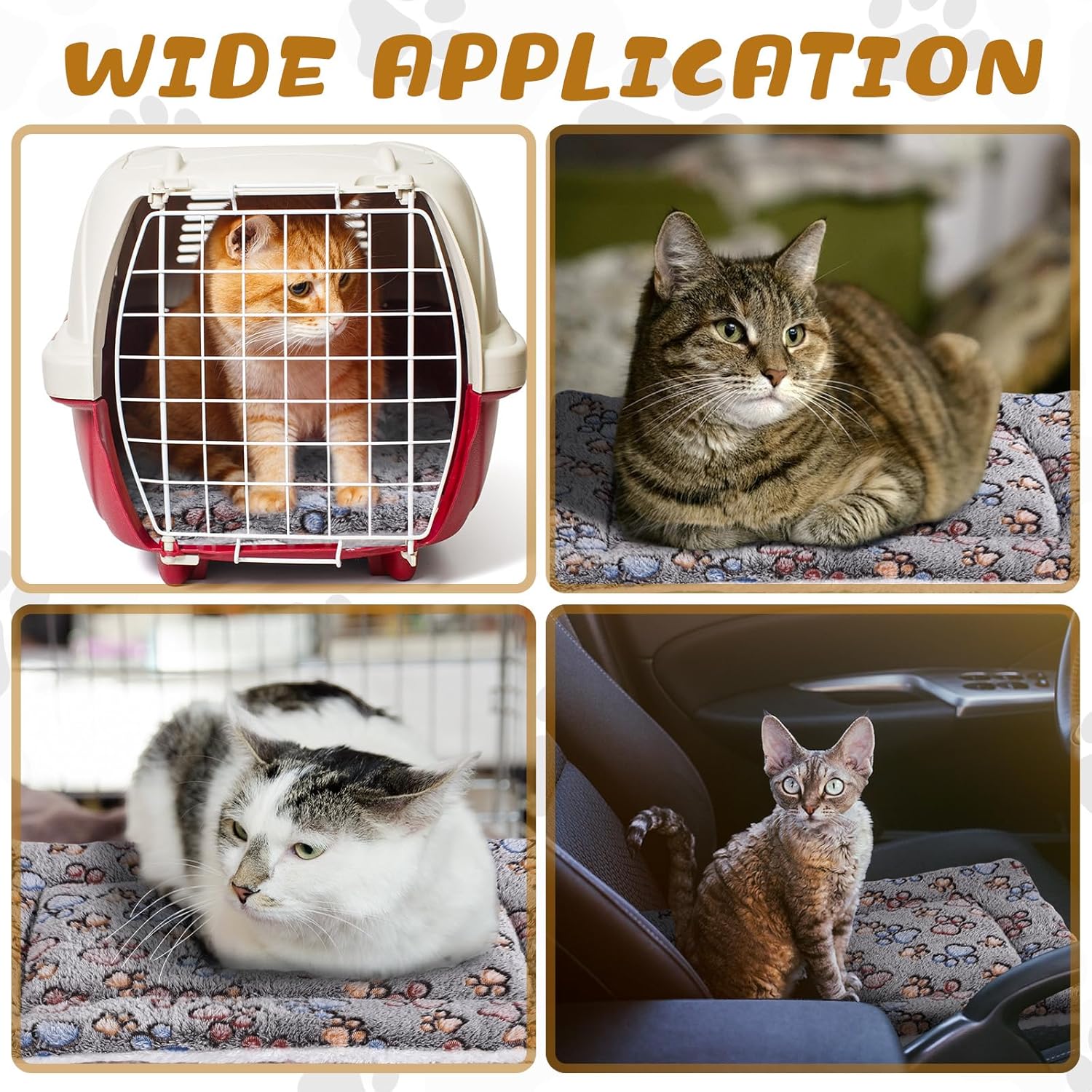 Tuanse 4 Pack Ultra Soft Dog Cat Bed Mat with Cute Prints Reversible Fleece Dog Crate Kennel Pad Cozy Washable Thickened Hamster Guinea Pig Pet Bed Mat for Small Animals (21 x14 Inches,Light Gray)
