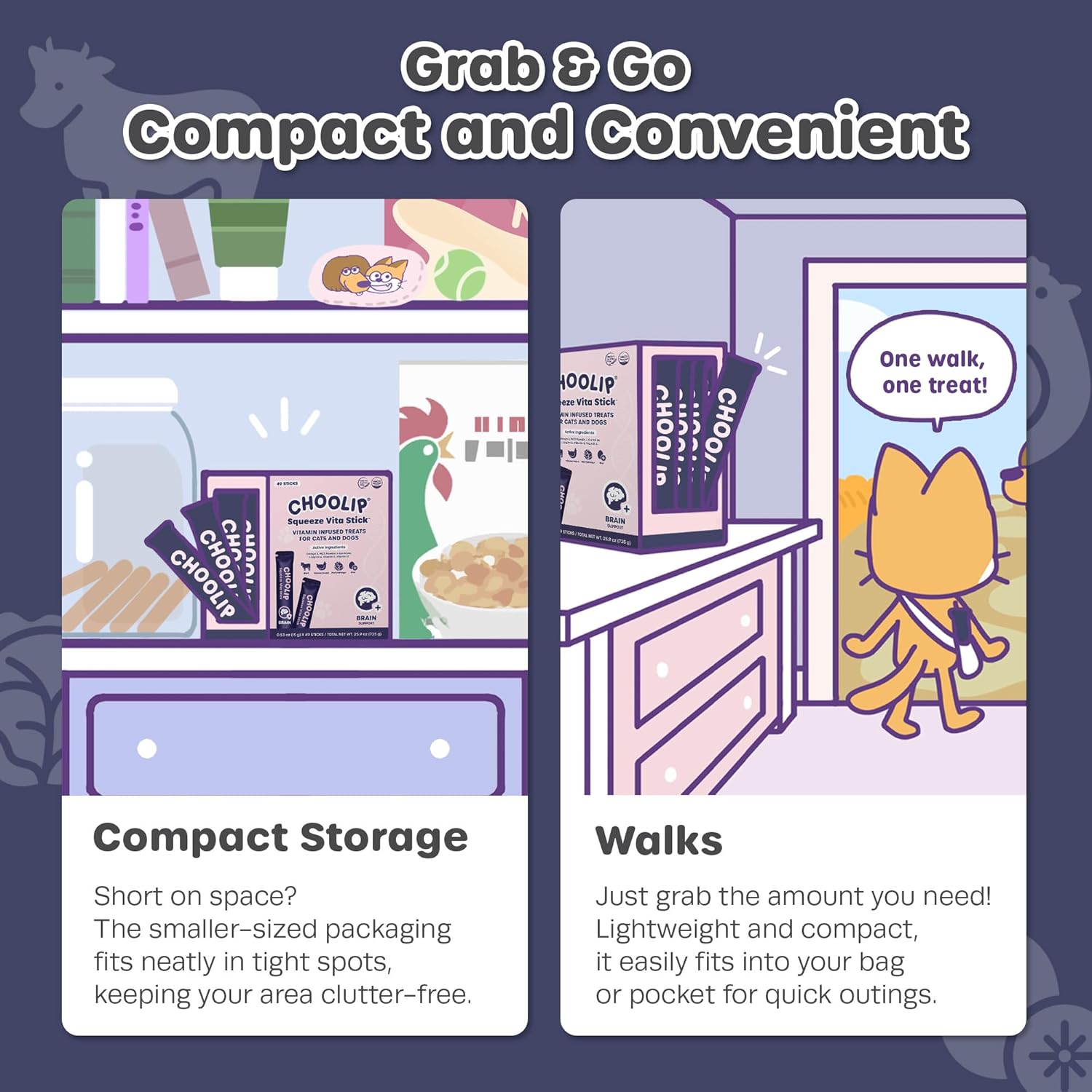 Grab & Go Squeeze Vita Stick Lickable Treats for Dogs & Cats. 49 Brain Support Sticks with Essential multivitamins. Soft and Tasty Paste for All Life Stages, Supporting Brain Health