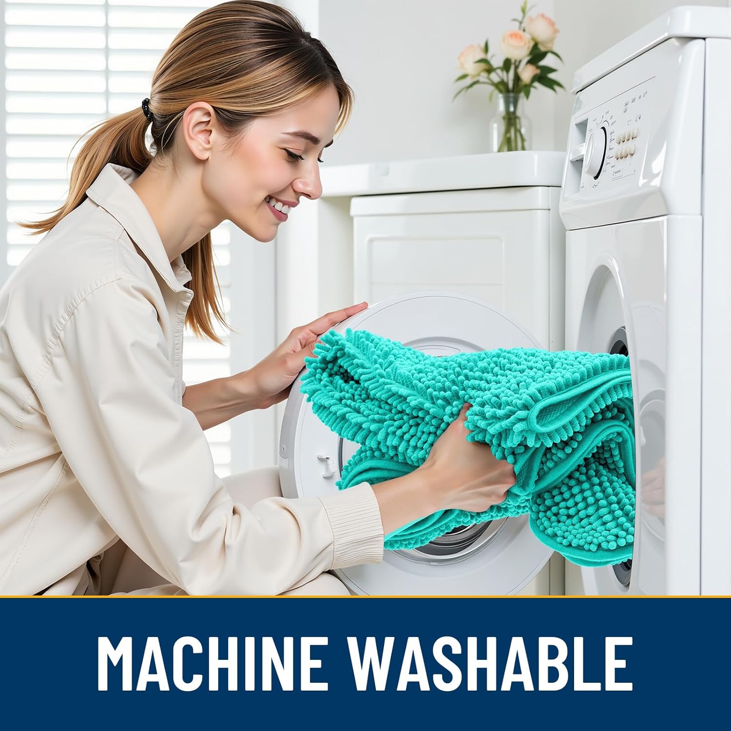 Smiry Dog Door Mat for Muddy Paws 36x24, Absorbs Moisture and Dirt Doormat, Non-Slip Washable Quick Dry Chenille Front Door Mat Indoor Entrance, Entryway Carpet for Inside Floor, Teal