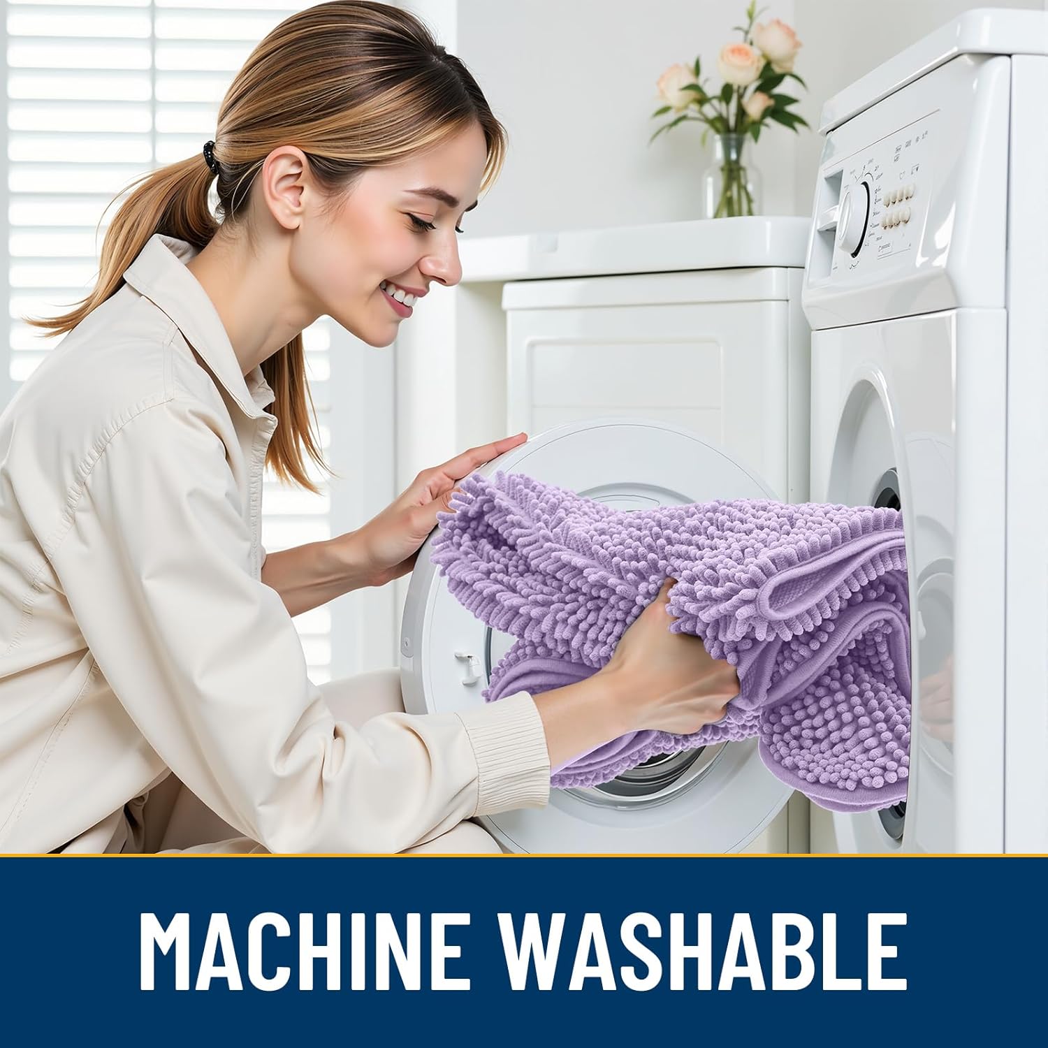 Smiry Dog Door Mat for Muddy Paws 30x20, Absorbs Moisture and Dirt Doormat, Non-Slip Washable Quick Dry Chenille Front Door Mat Indoor Entrance, Entryway Carpet for Inside Floor, Lavender