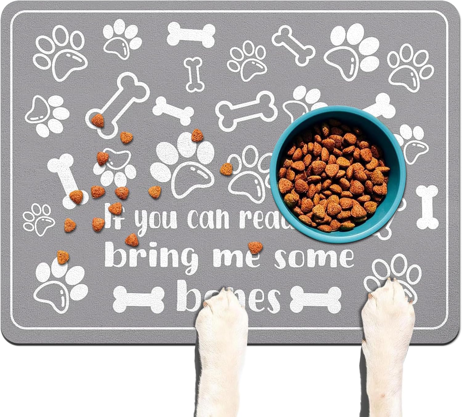 - Dog Food Mat & Cat Food Mat - Our premium pet food mat provides the perfect solution for messy drinkers/eaters! This extra-large pet feeding mat catches all spills from dog bowl mat and water dishes, keeping your floors spotless.